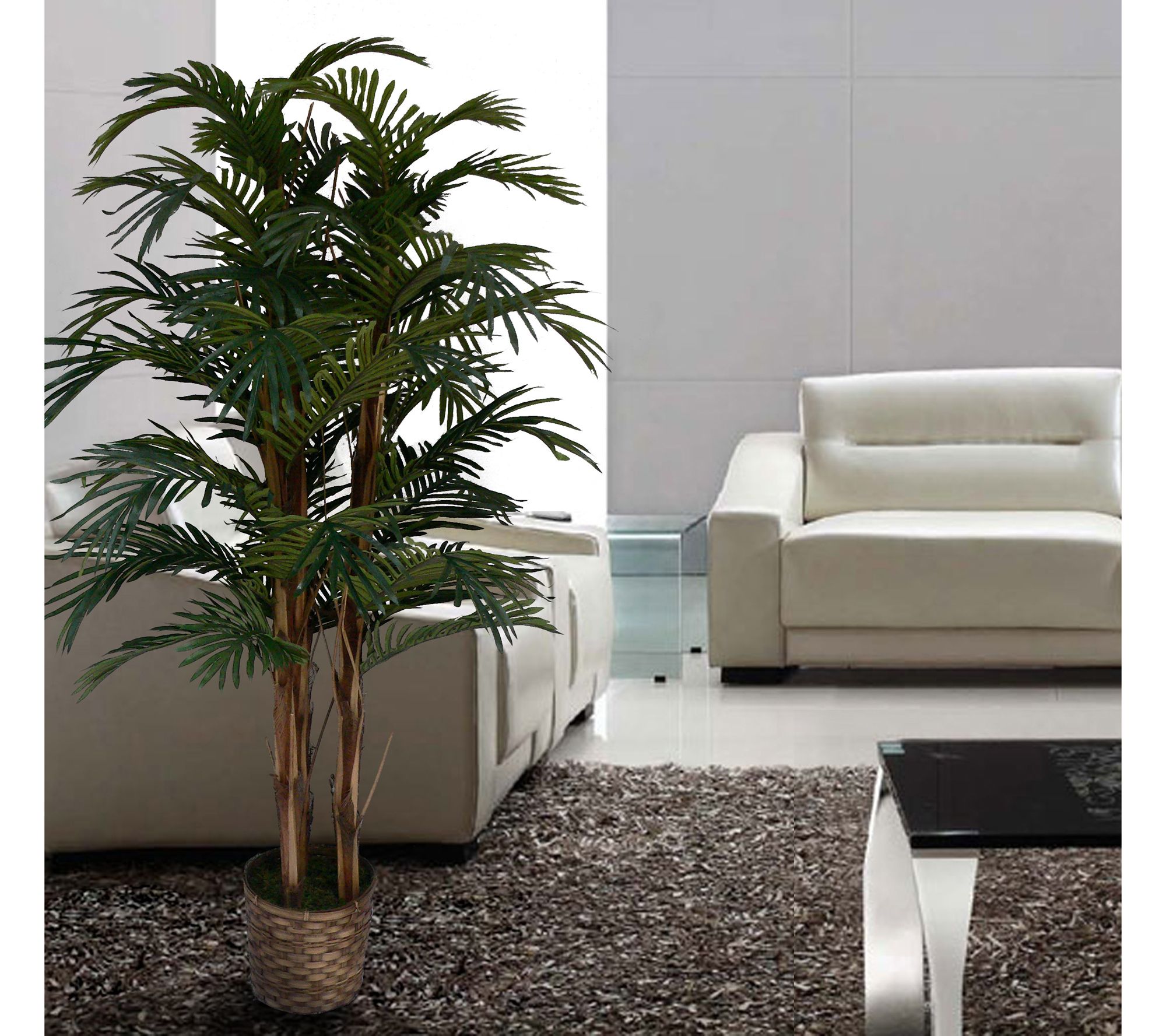 Add a striking touch to your home or office with this exotic lifelike palm tree set in a lovely wicker planter. From Vintage Home.