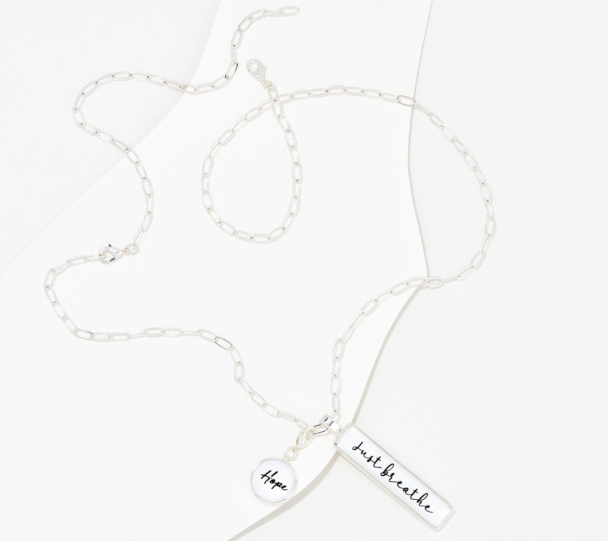 Includes convertible necklace, rectangular pendant, and circular pendant