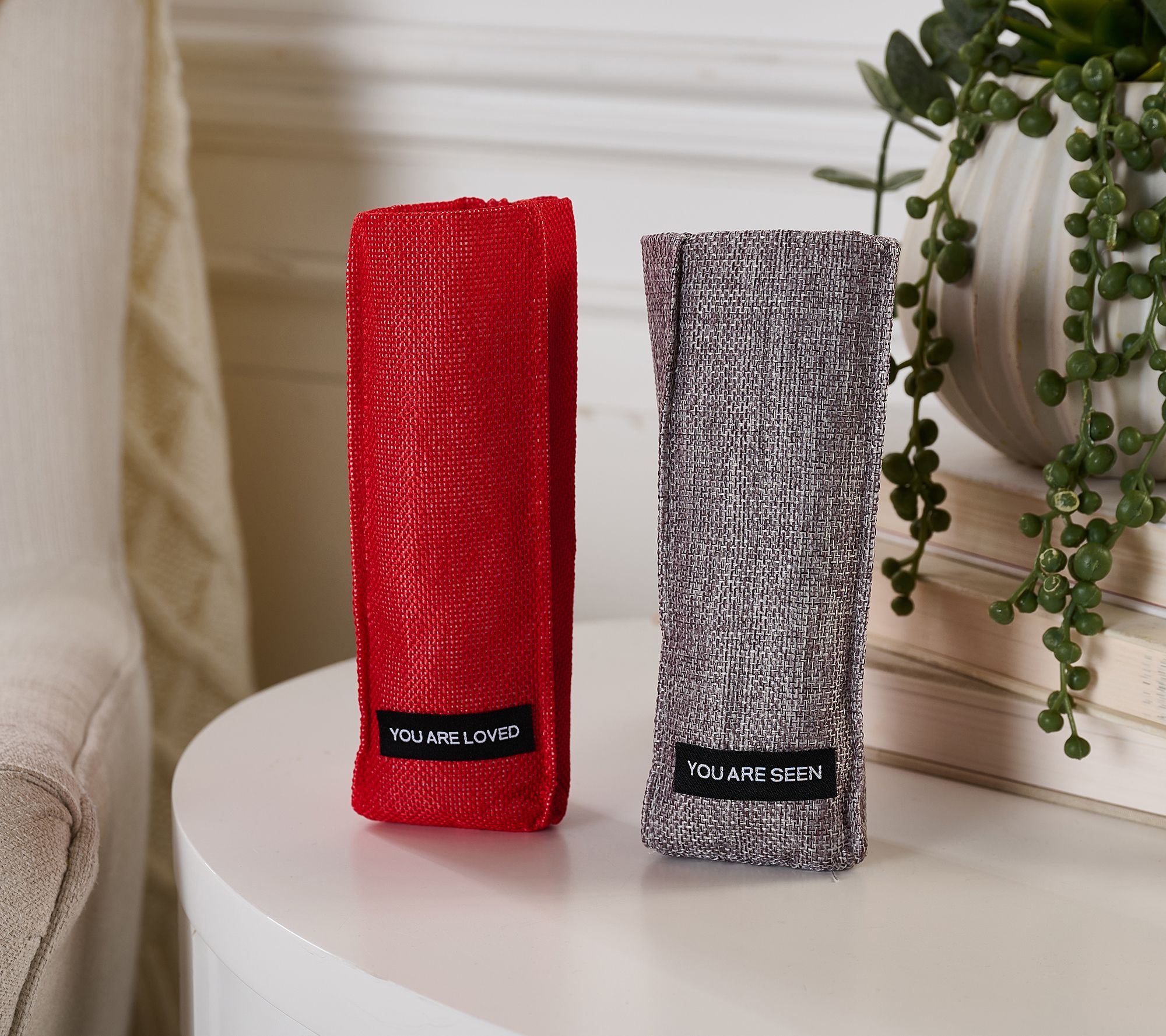 Thanks to a unique vertical standing design, these eyeglasses holders are easy to spot (say goodbye to misplaced glasses!). Each weighted holder features a message of affirmation for an instant boost to your day. From Vintage Sparrow.