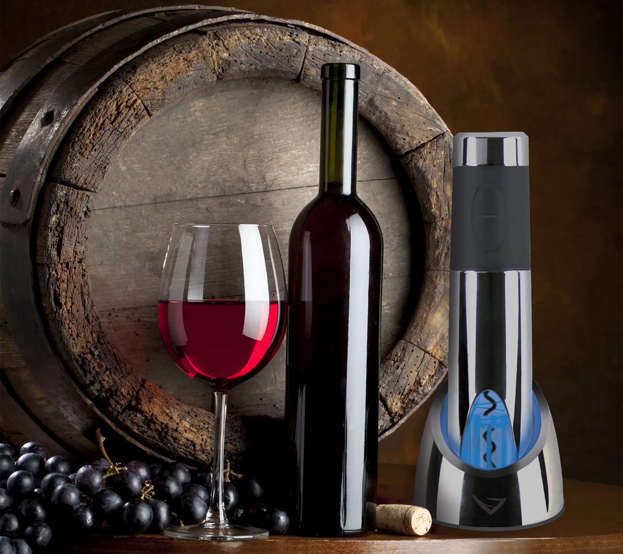• Includes wine opener, foil cutter, recharging base, and cord
