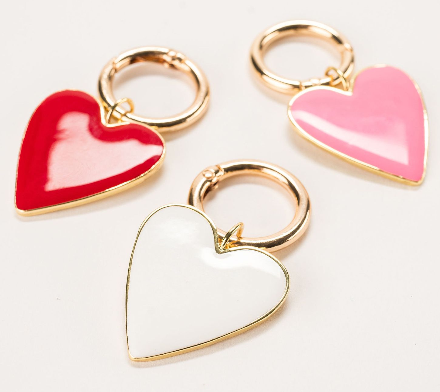 Add an adorable touch to your handbag with this enamel heart bag charm. Whether you're heading out for a casual day with friends or a special evening event, a quick pop of personality can easily be added. Attach it to your purse, keyring, or tote with its convenient O-ring clasp, and transform your accessory game instantly. Create your own unique fashion statement by building up or swapping out charms with other favorites. From Violet & Brooks.