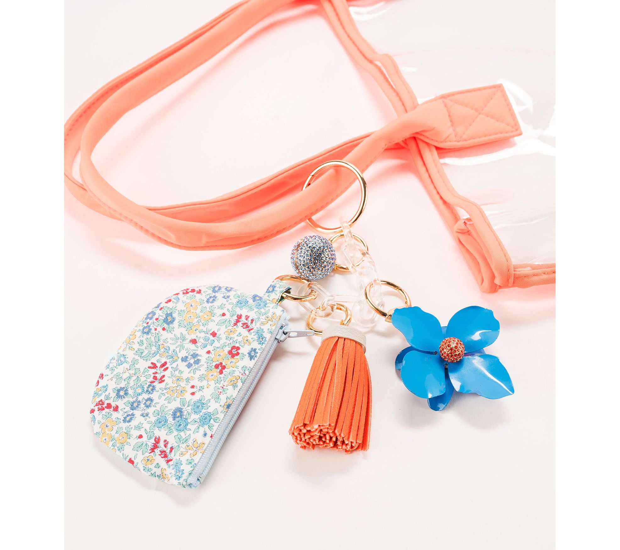 Elevate your everyday style by adding a touch of flair with the Flora Coin Purse Bag Charm. Perfect for those who love to create a personalized look, this charming accessory keeps your coins and small essentials secure. Ideal for adding to your handbag, the convenient O-ring clasp allows you to effortlessly attach it to a bag chain. This versatile piece is not just functional but also a trendy addition to any purse. From Violet Brooks.