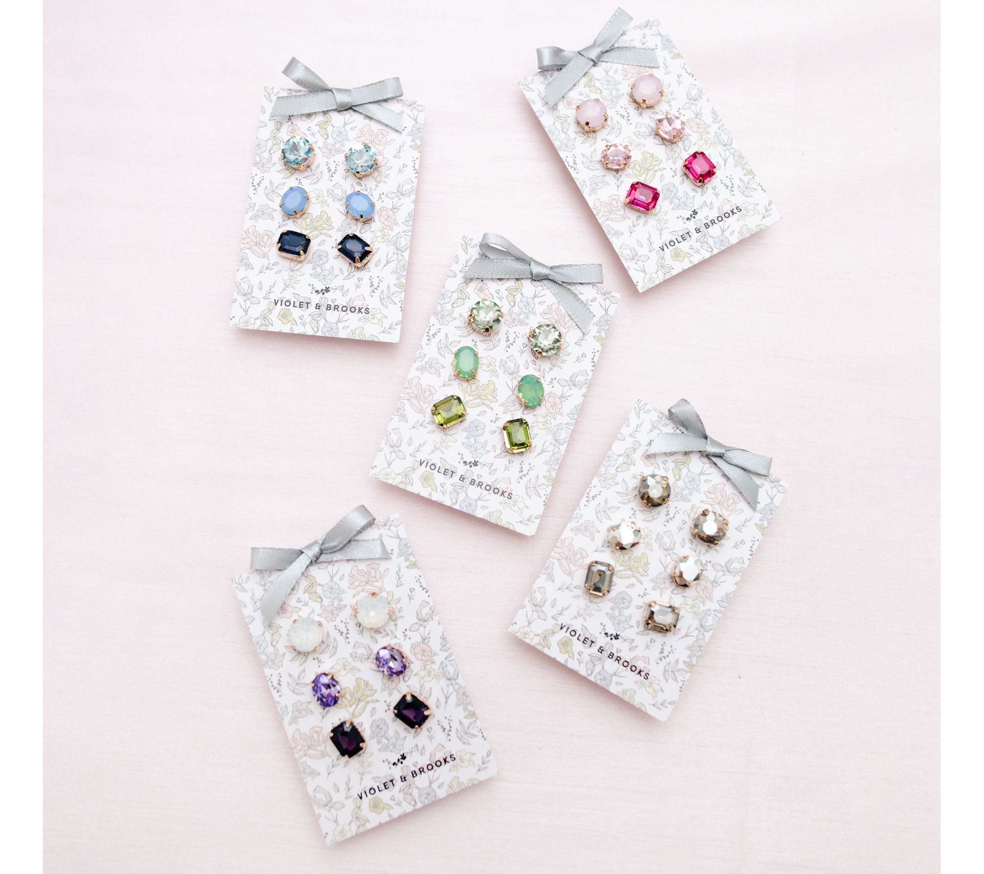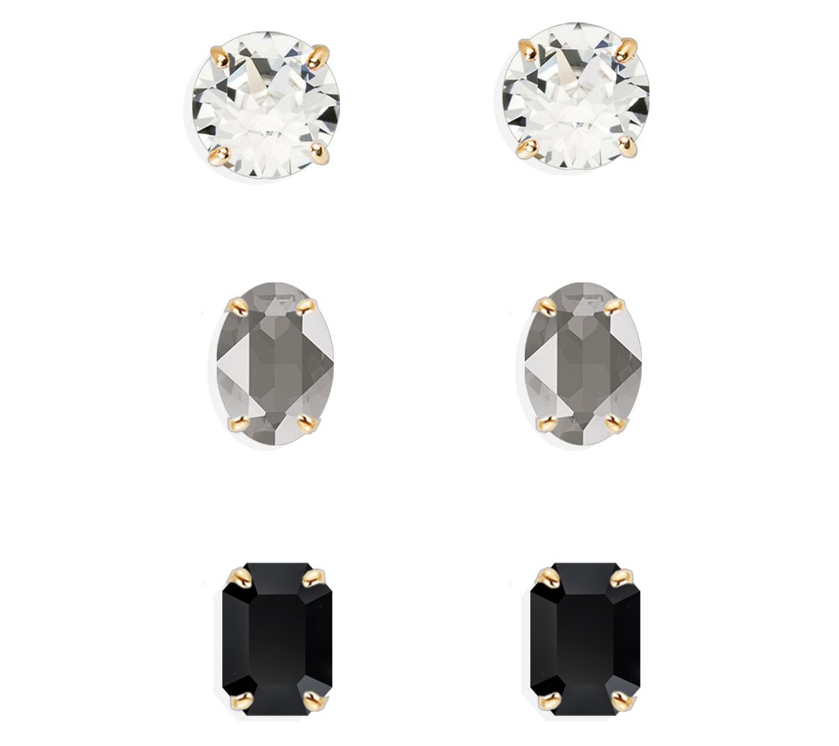 • One pair each of round, oval, and square crystal stud earrings