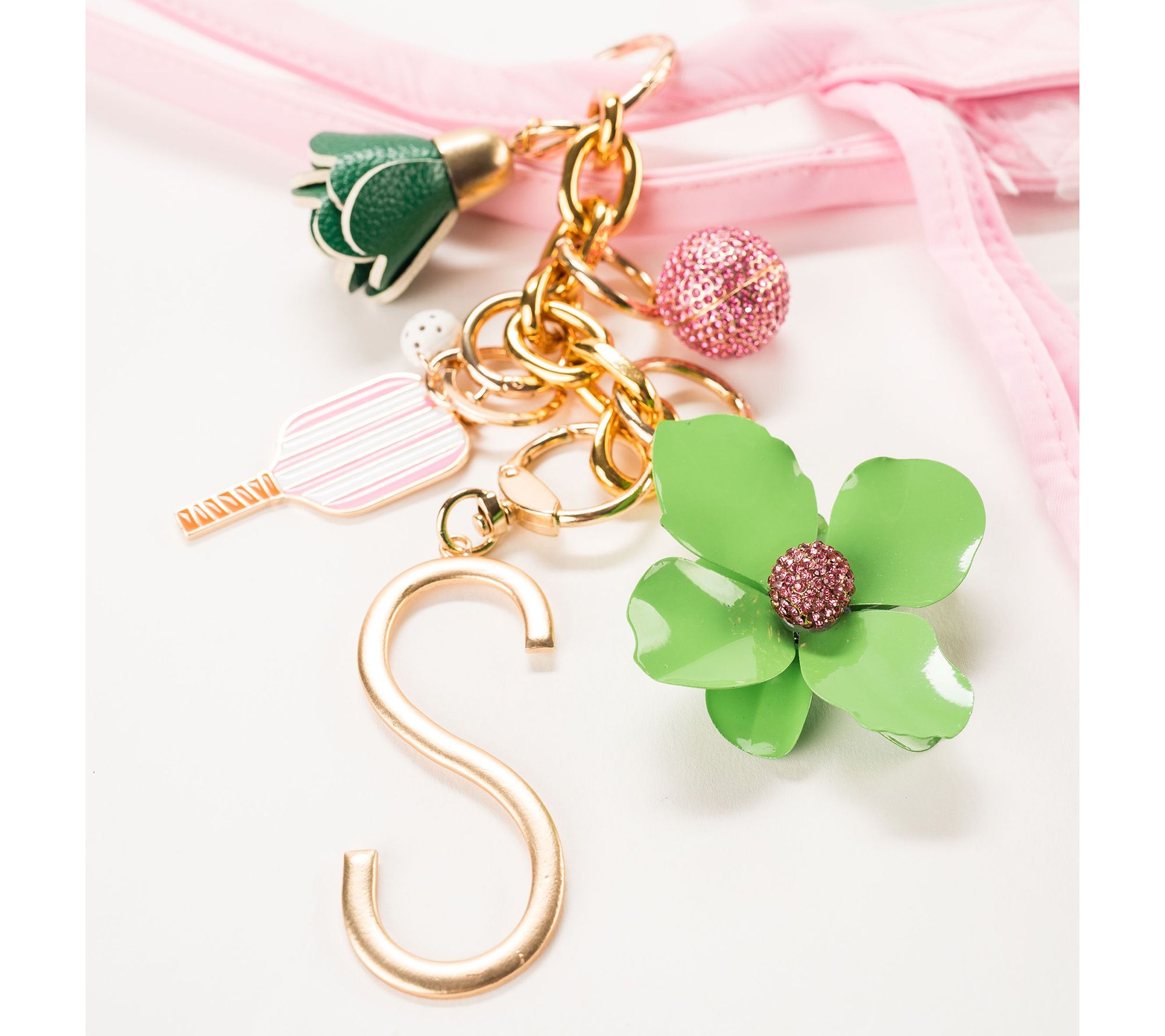 Transform your handbag into a standout piece with this delightful flower tassel bag charm. The charm features goldtone hardware and a playful tassel design that seamlessly adds personality to your accessory collection. Whether you're feeling minimalist or want to create a bold statement, this charm is versatile enough to match your mood. With a simple O-ring clasp, it's easy to attach and reattach, making bag personalization a breeze. From Violet Brooks.