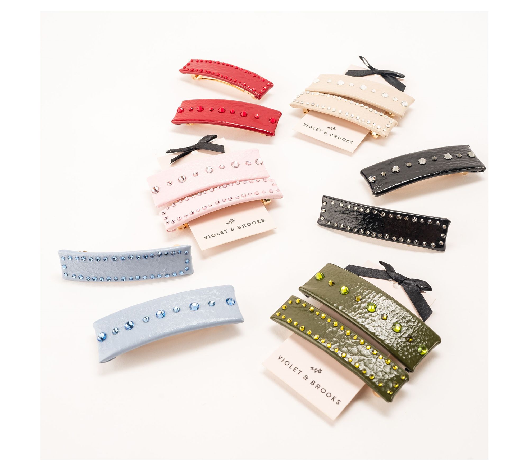 Add instant embellishment to any hairstyle with this set of two crystal barrettes. From Violet & Brooks.