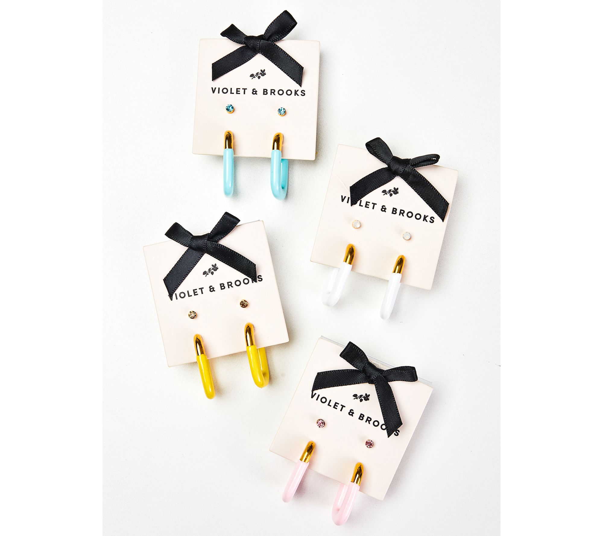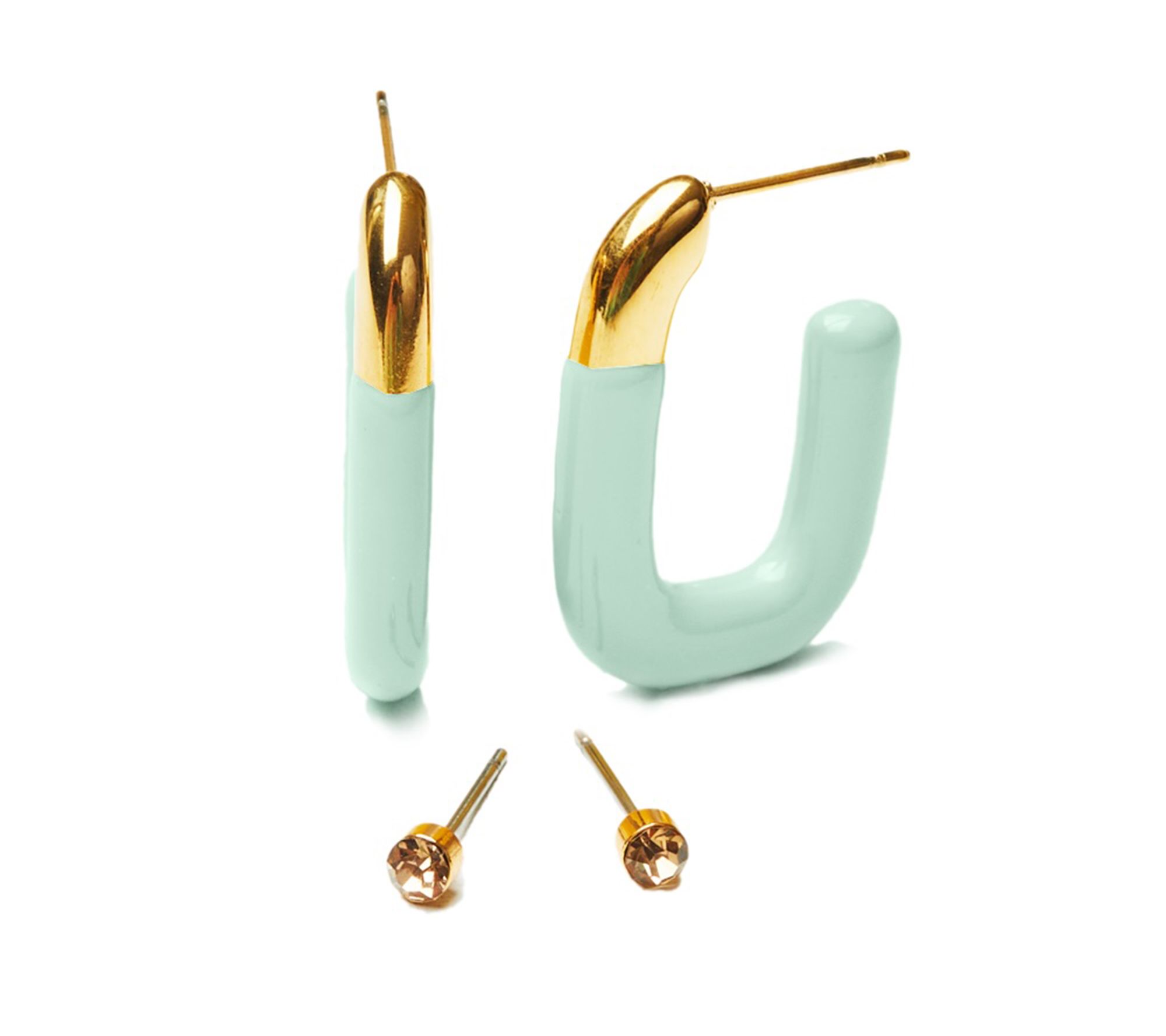 Bring a pop of playful color to your look with this set of earrings, featuring oval-shaped enamel hoops and sparkling crystal stud earrings. Perfect for adding versatility to your jewelry collection and a touch of fun to any outfit. From Violet Brooks.