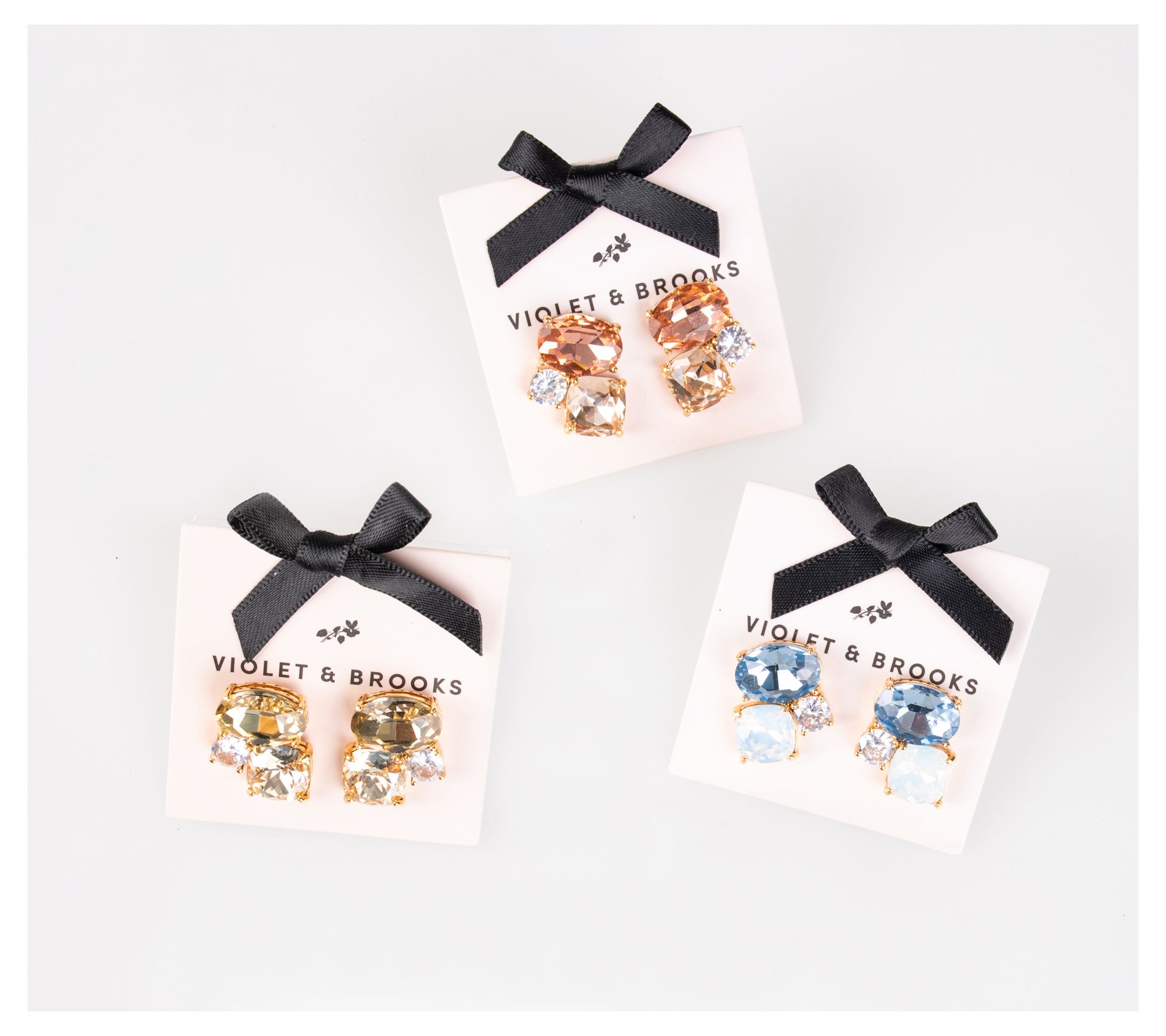 Complement any outfit with these eye-catching earrings that project sophistication with sparkling crystals. From Violet & Brooks.