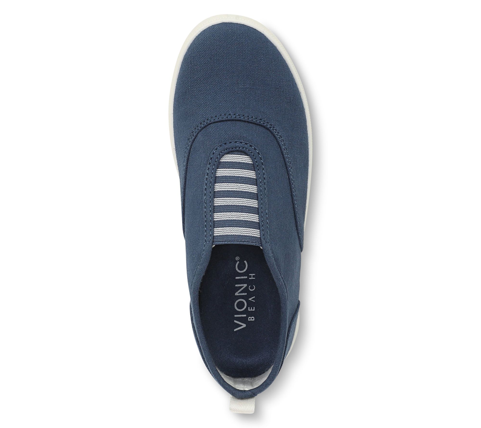 Busy mornings and weekend errands feel easy in these canvas slip-on sneakers, designed with center elastic goring so you can be out the door in seconds. Thoughtful VIO MOTION Technology cushions every step while providing contoured arch support and flexibility to keep you comfortable from sunup to sundown. From Vionic®.