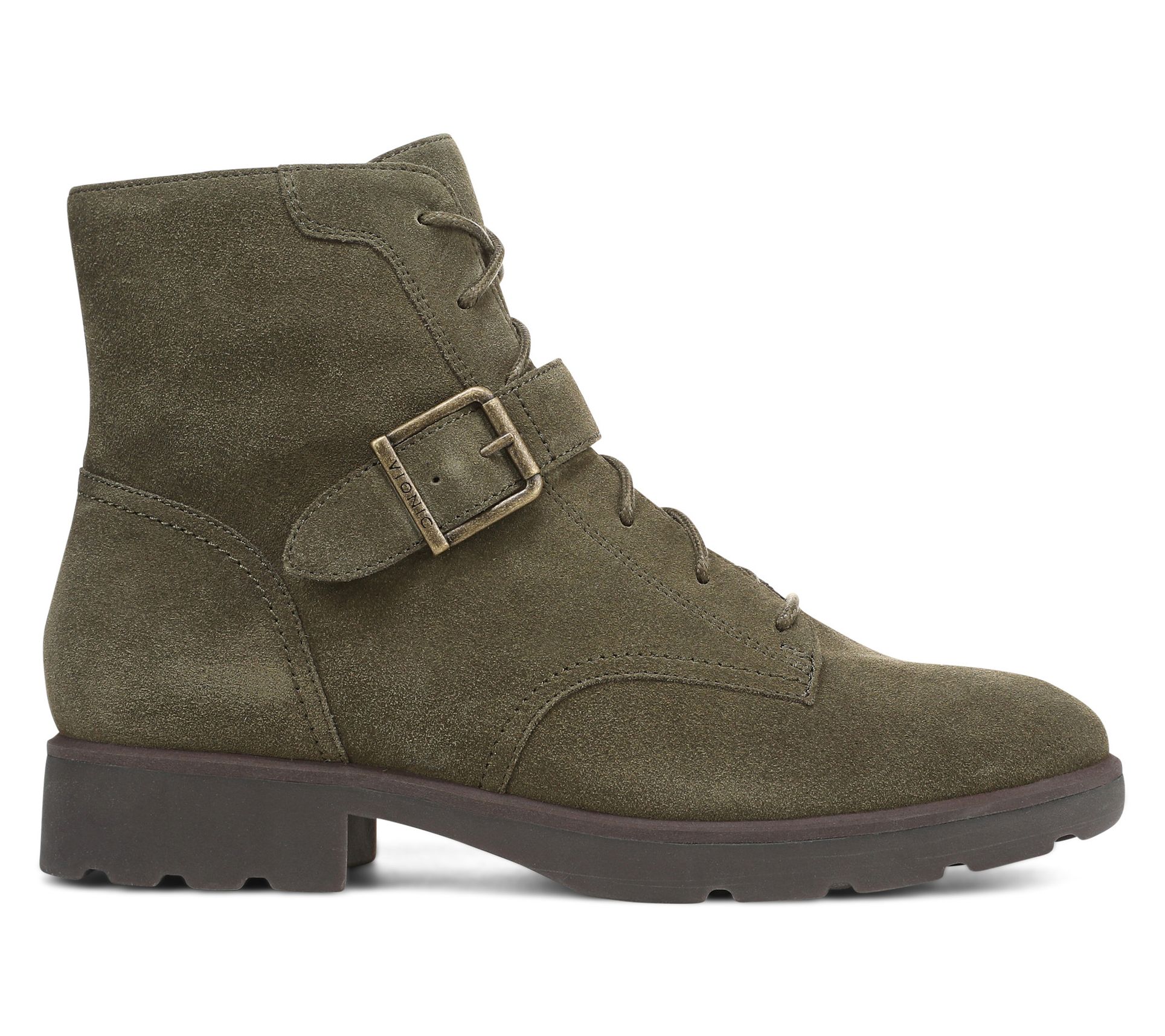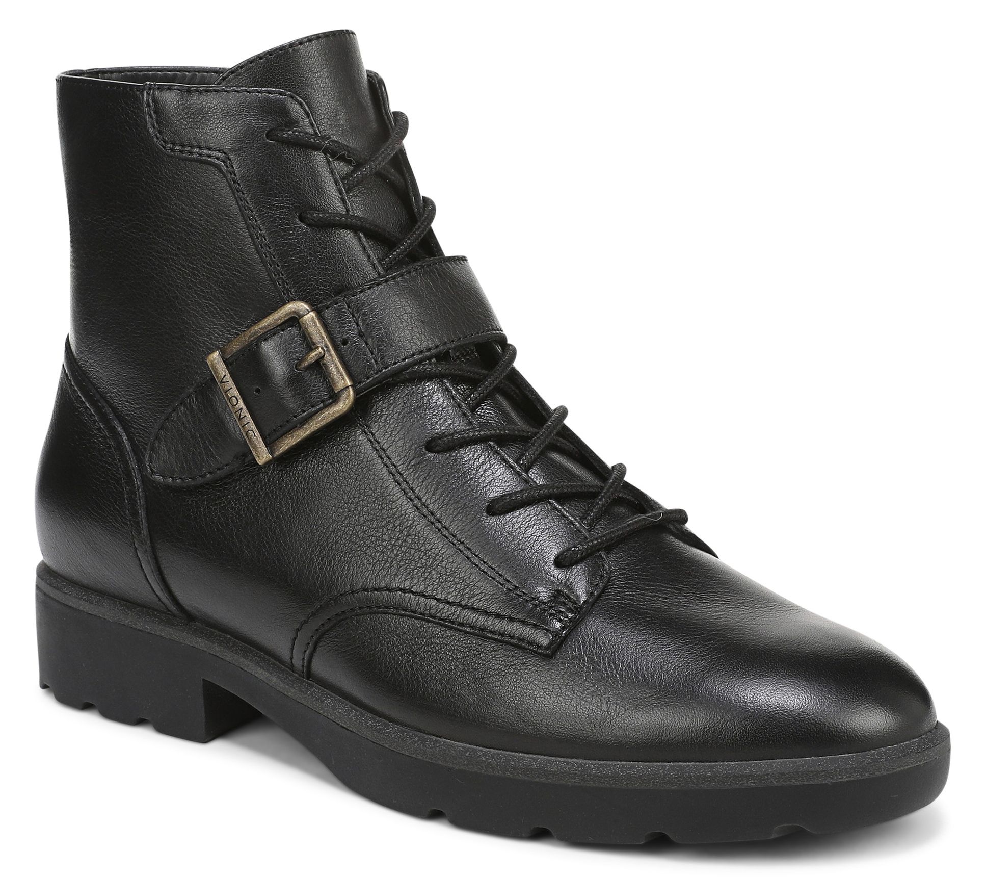 Whether you're heading out for a trail walk or enjoying a casual weekend with friends, these too-cute hiker boots deliver support and style. A lightweight lug sole grips surfaces with ease, while the statement buckle and lace-up front bring a bold touch. The contoured arch support and cushioned footbed add comfort every step of the way. From Vionic®.