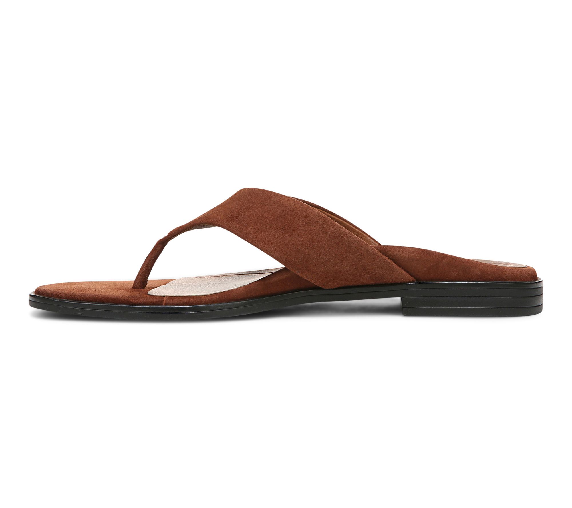 Thong style with toe post; suede, tumbled leather, or herringbone-pattern metallic-leather upper