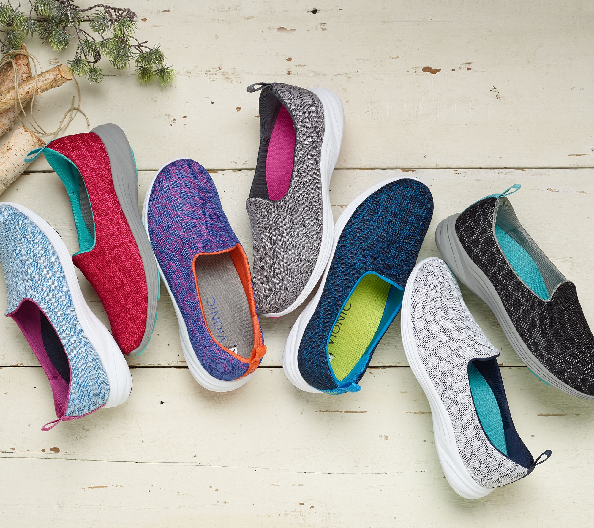 Get your year in gear in these Vionic slip-on sneakers. Wherever your resolutions take you, you'll go the distance in comfort and style with lightweight mesh and the support of an orthotic footbed. Freshen up your wardrobe and put extra spring in your step with new sneakers that are designed to help reduce stress on your feet. Slip them on for a brisk walk or errand run, and feel the stable comfort you get from these stylish sneaks. From Vionic(R).