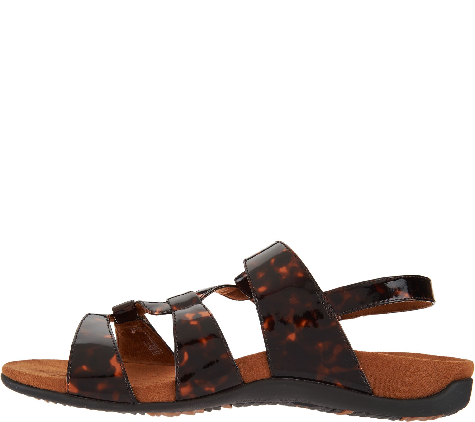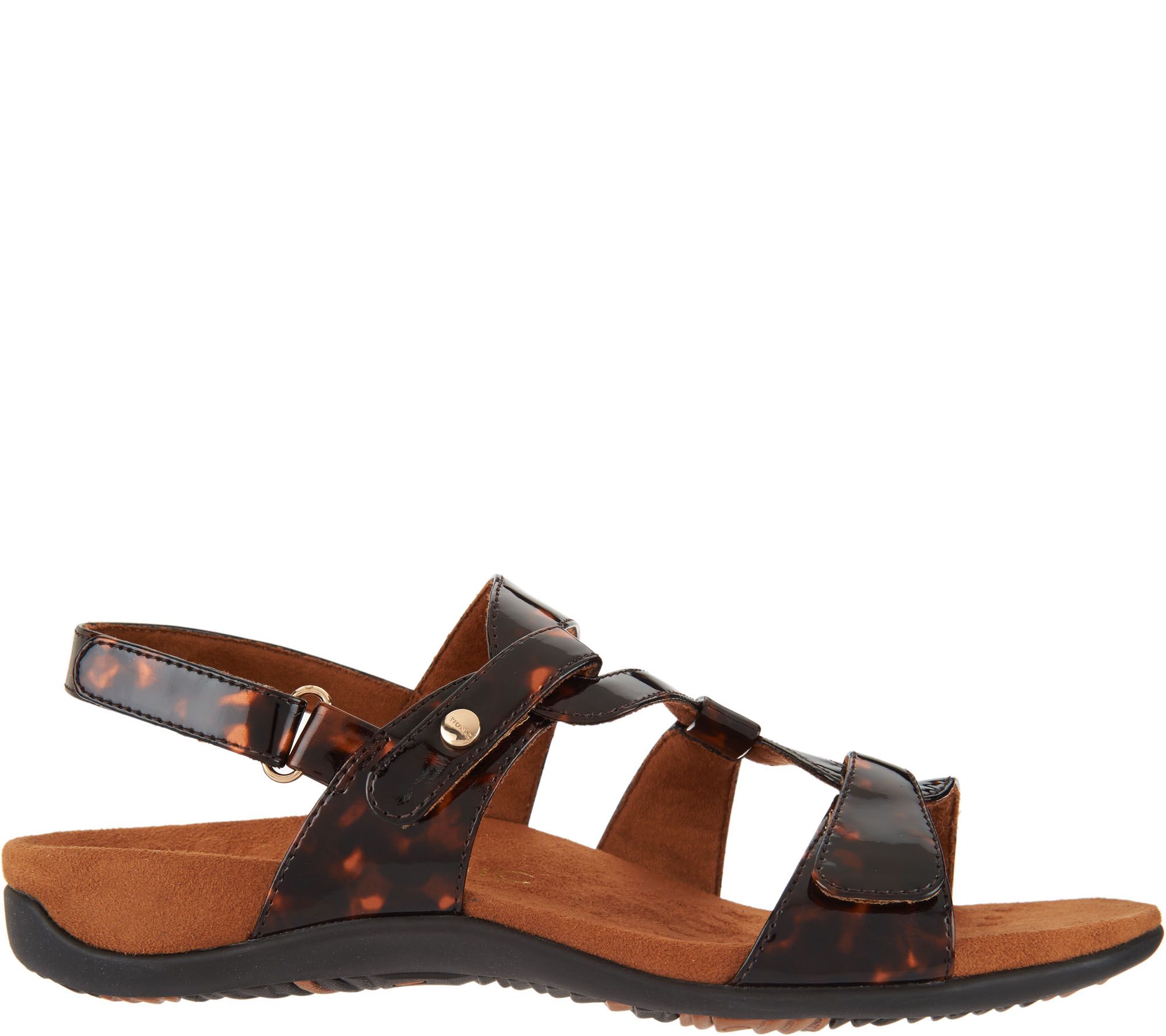 Super strappy. These backstrap sandals from Vionic feature the signature Orthaheel technology and wave-patterned tread for constant foot support. Hook-and-loop closures add a touch of fashionable functionality. From Vionic.