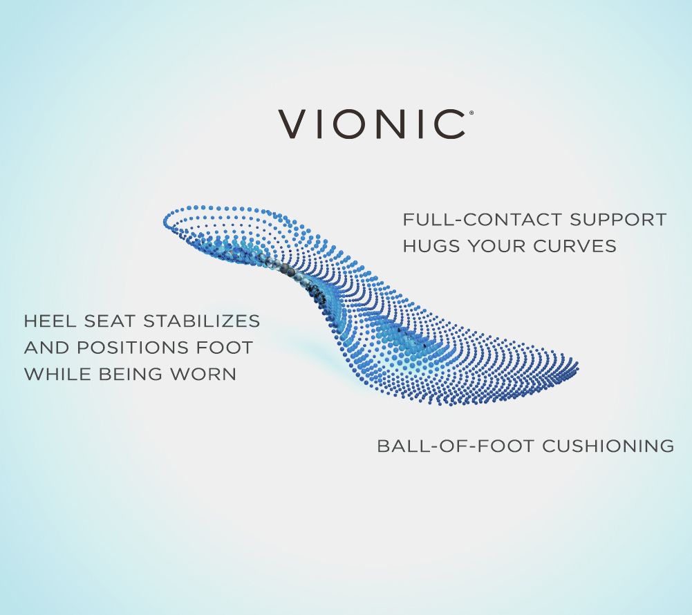 Podiatrist-designed, microfiber-covered, biomechanical orthotic footbed with Orthaheel® technology and a deep heel cup helps stabilize, support, and realign feet back to their natural position while wearing; enhanced metatarsal support under forefoot