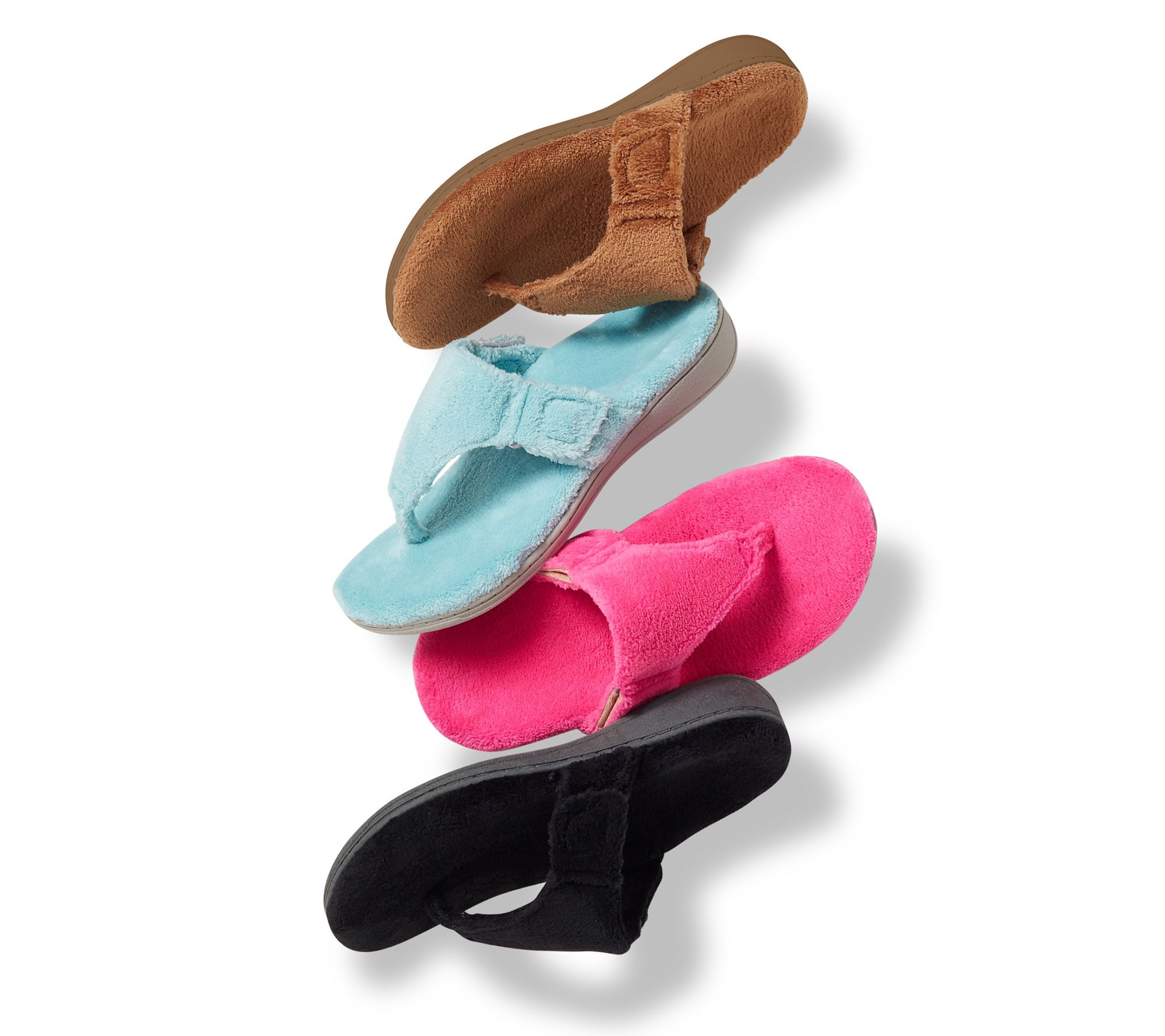 Lounging never felt so great. The terry-covered upper and straps of these adjustable thong slippers ensure a cozy fit for those do-little days. From Vionic®.