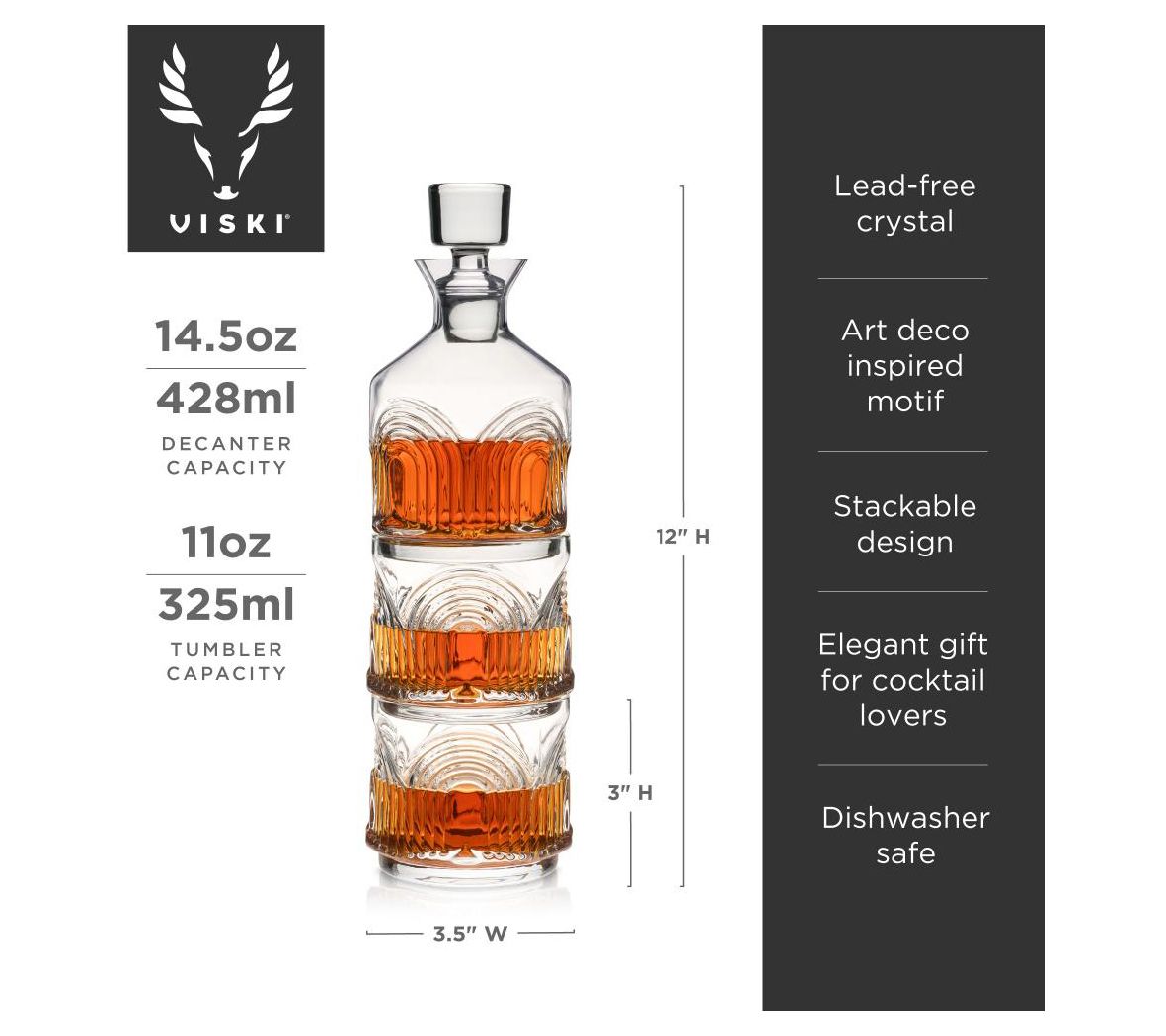 Viski 3-Piece Deco Beau Crystal Stacking Decanter