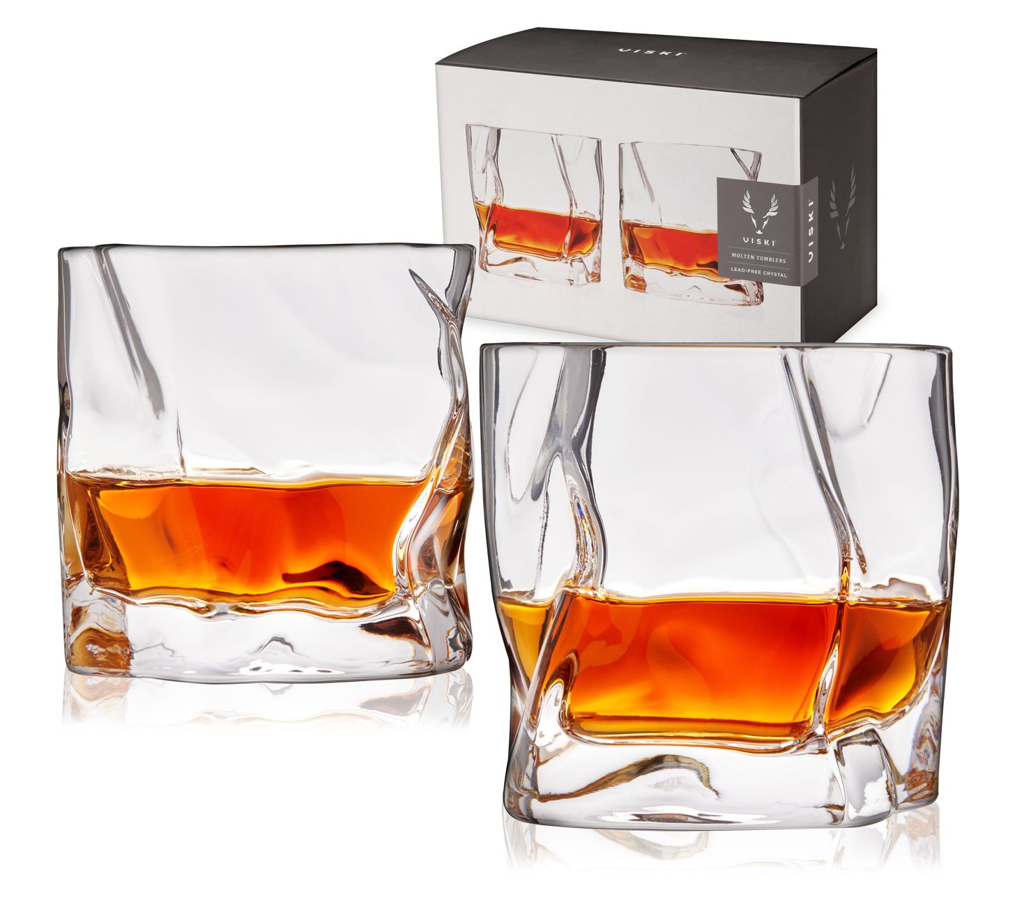 Add a creative touch to cocktail hour with these crystal tumblers on your tabletop. Crafted to look as though they're in the process of being crumpled, these abstract tumblers make eye-catching vessels for your favorite scotch or a classic old fashioned. From Viski.