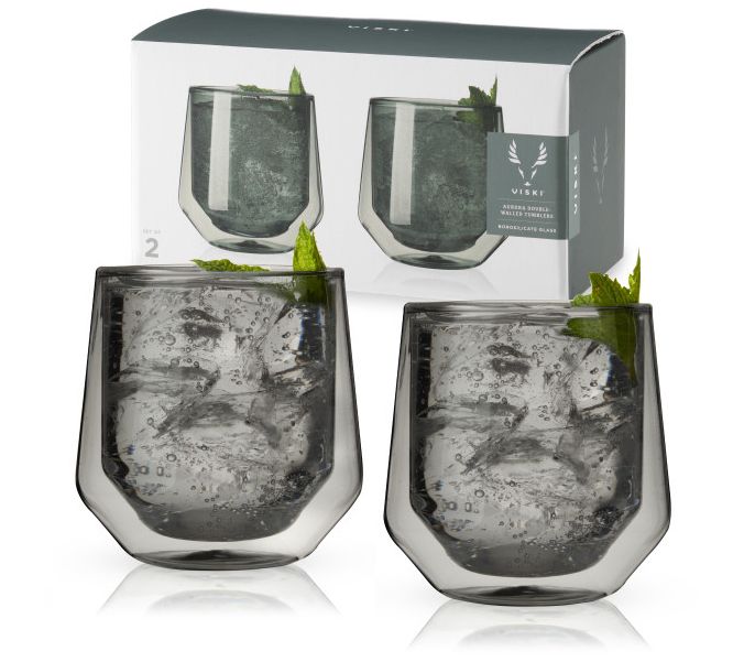 Enjoy your favorite cocktails, wine, or iced coffee in style with the Viski double-walled Aurora tumblers. Handcrafted from durable borosilicate glass, these tumblers helpt to maintain your drink's temperature while adding a pop of color to your glassware collection. From Viski.