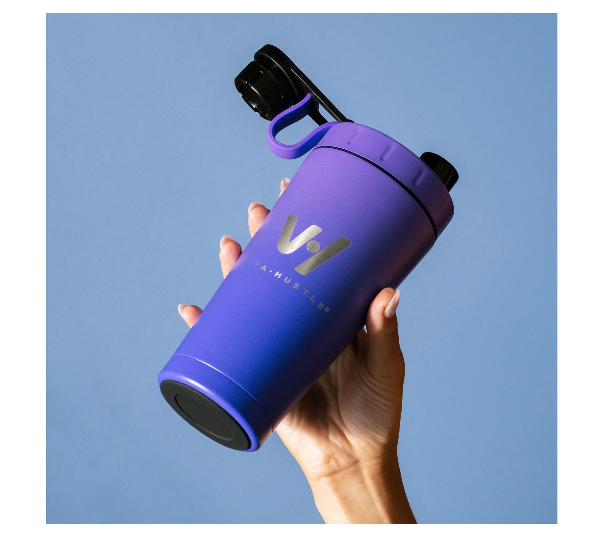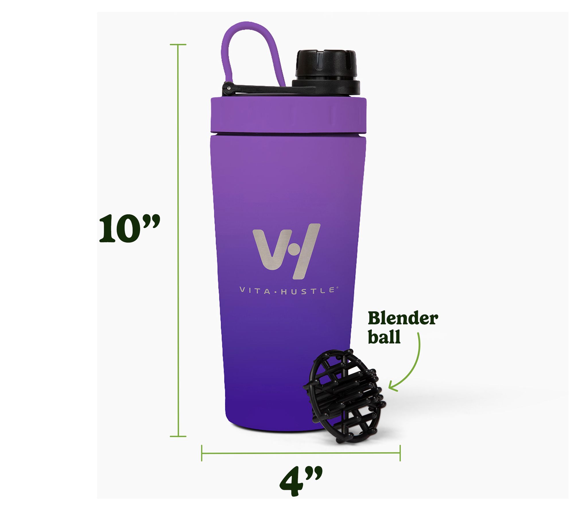 Wellness goals? Enjoy your protein shakes, smoothies, and added supplements on-the-go with the VitaHustle stainless steel shaker bottle. Featuring a 20-oz capacity, you can shake up your favorite drink, then sip with ease. The included blender ball ensures your drinks are perfectly blended every time, and convenient measurement markers are handy for precise mixing. The easy-open, easy-close screw-on lid makes this a convenient choice for your busy lifestyle. From VitaHustle.