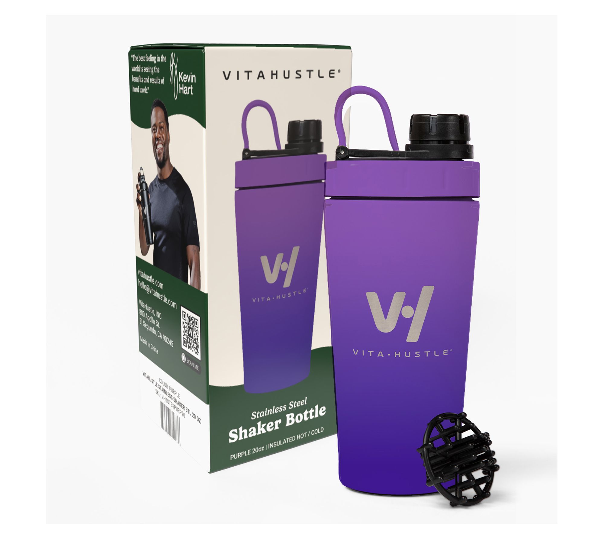 VitaHustle 20oz Stainless Steel Shaker Cup with Blender Ball