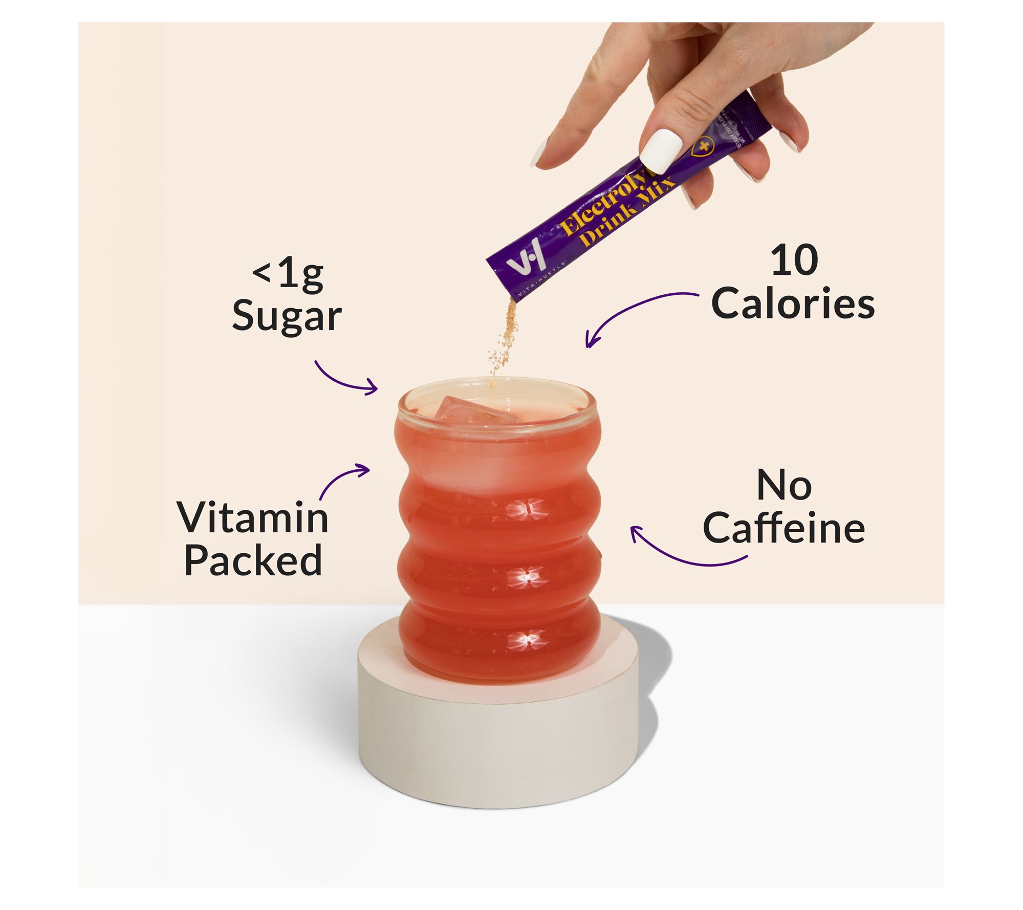 Quench your thirst with VitaHustle Electrolyte Hydration. Made with a targeted blend of electrolytes, vitamins, and minerals, this drink delivers refreshing hydration with a delicious berry flavor -- the perfect pick-me-up after a workout or a night out. From VitaHustle.