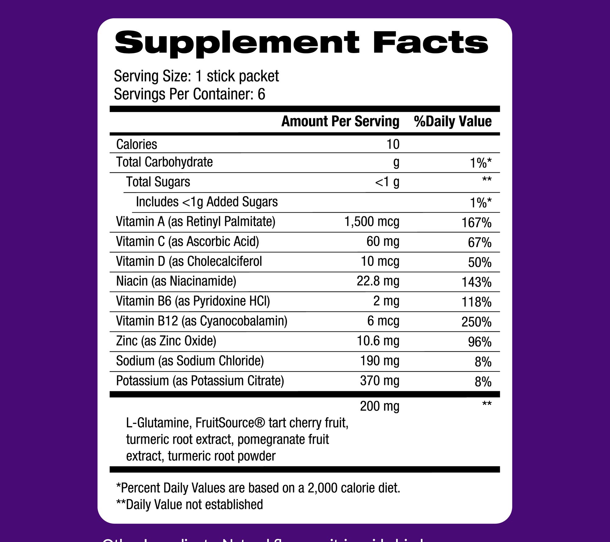 • Contains a proprietary blend of turmeric root, tart cherry, and L-glutamine