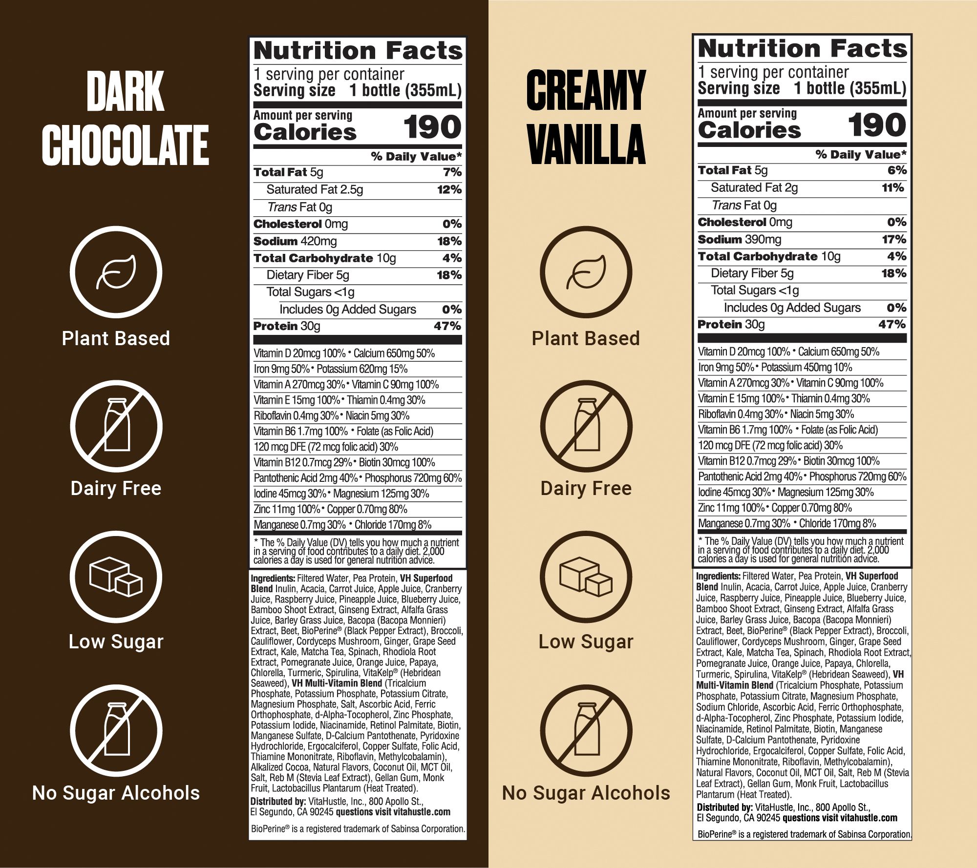 It's not always easy or convenient to get all your greens -- until now! Wake up your wellness journey with VitaHustle's One Superfood protein shakes. Whether you need a quick meal after a workout or a nourishing midday boost, this ready-to-drink shake delivers it deliciously. It's packed with 30 grams of plant-based protein, multivitamins to support a healthy metabolism, and plenty of dietary fiber. And it's a satisfying snack for a busy day -- just grab and go and you've got your daily dose of superfood nutrition. From VitaHustle.