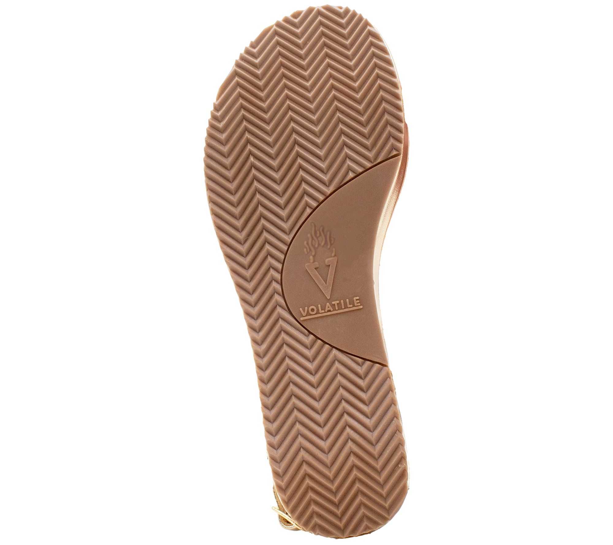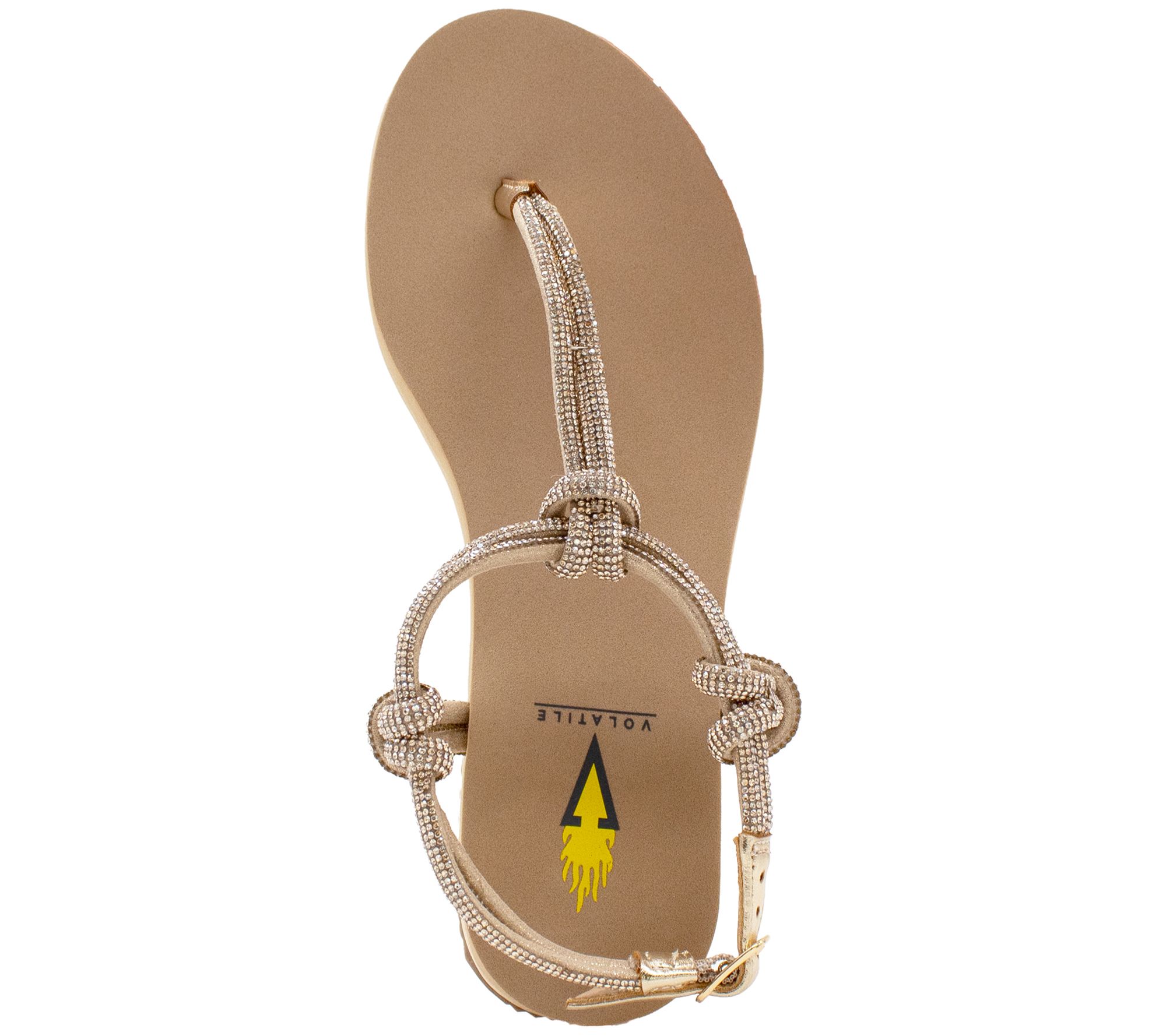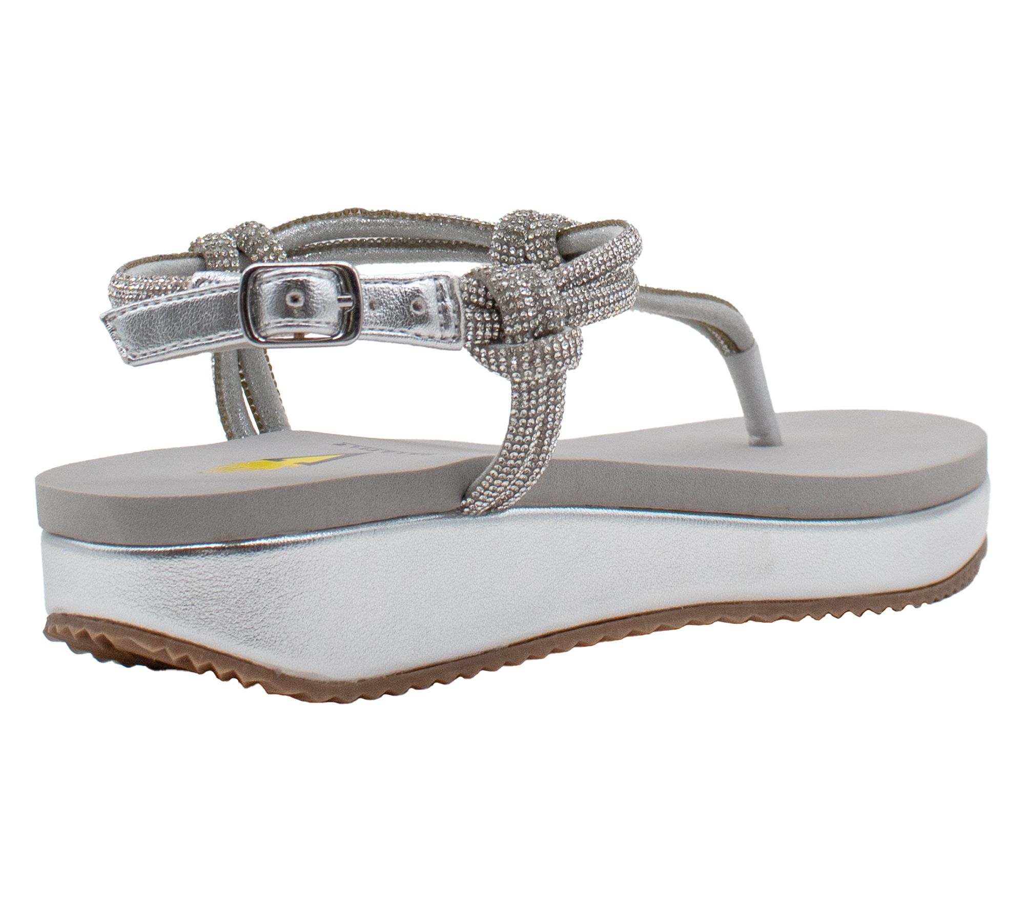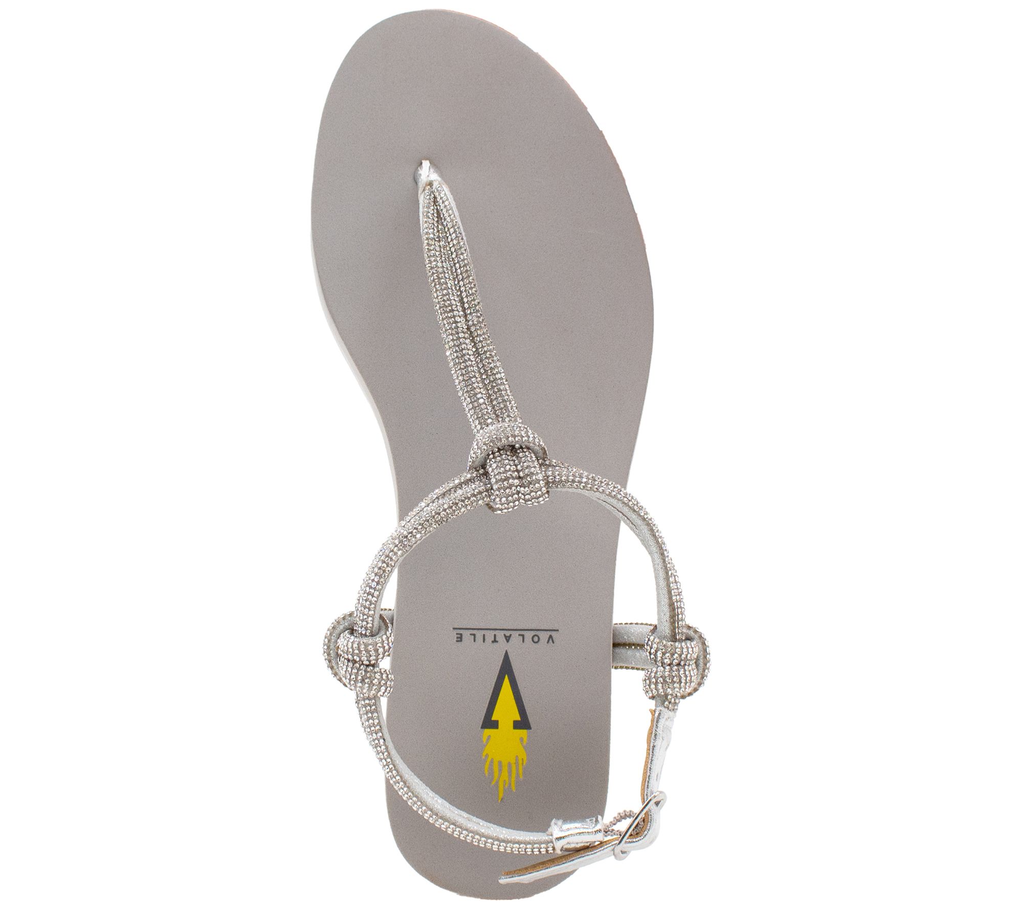 Slip into effortless elegance with these glamorous thong sandals from Volatile. Imagine strolling along the beach or enjoying a garden party, feeling the shimmering rhinestones catching the light with every step. The knotted upper and sleek metal buckle offer a secure fit, while the metallic faux leather wedge provides gentle lift and support. Whether paired with your favorite sundress or casual shorts, these sandals will add a touch of sparkle and sophistication to your summer wardrobe. From Volatile.