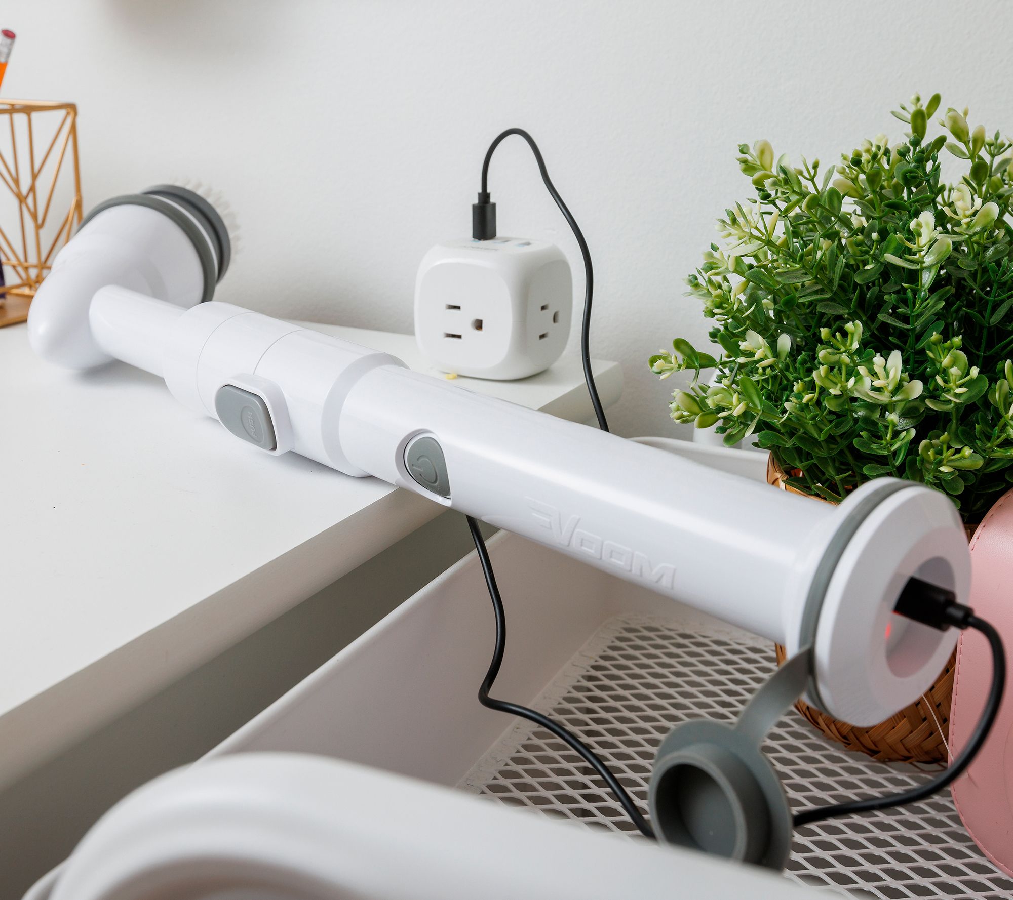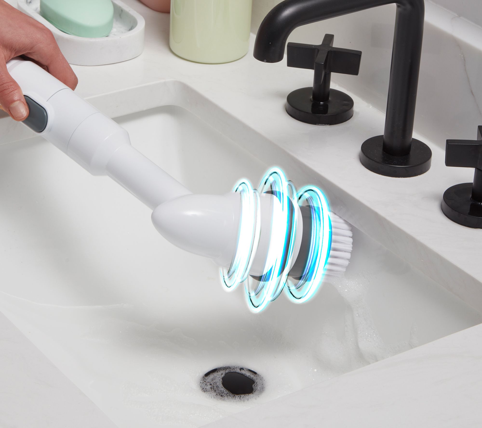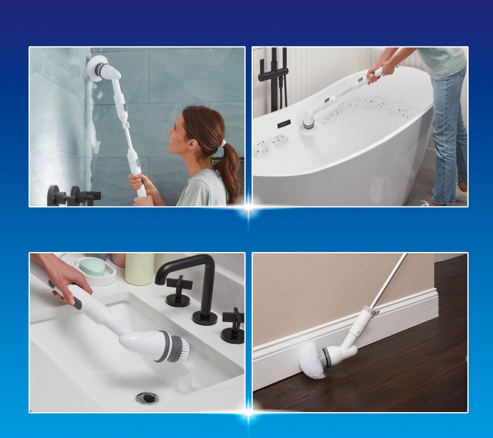 Whether you're facing bathroom grime or kitchen spills, this cordless spin scrubber lends an extra hand -- no cords to dodge, just grab, go, and power through tough messes anywhere in your home. Choose between two included brushes to suit light touch-ups or challenging build-up, and extend the handle to reach every corner with ease. From Voom.