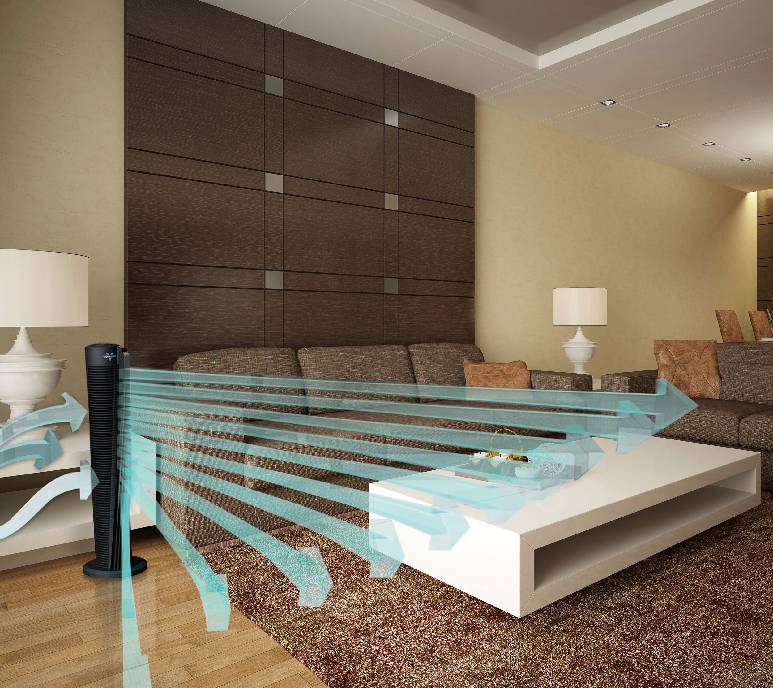 Keep your cool using the Vornado 173 V-Flow circulator. Its specially contoured outlets create a wide span of air flow that continuously moves throughout a room. A push-button remote control lets you adjust the settings and attaches to the tower via magnets to help prevent misplacement. From Vornado.