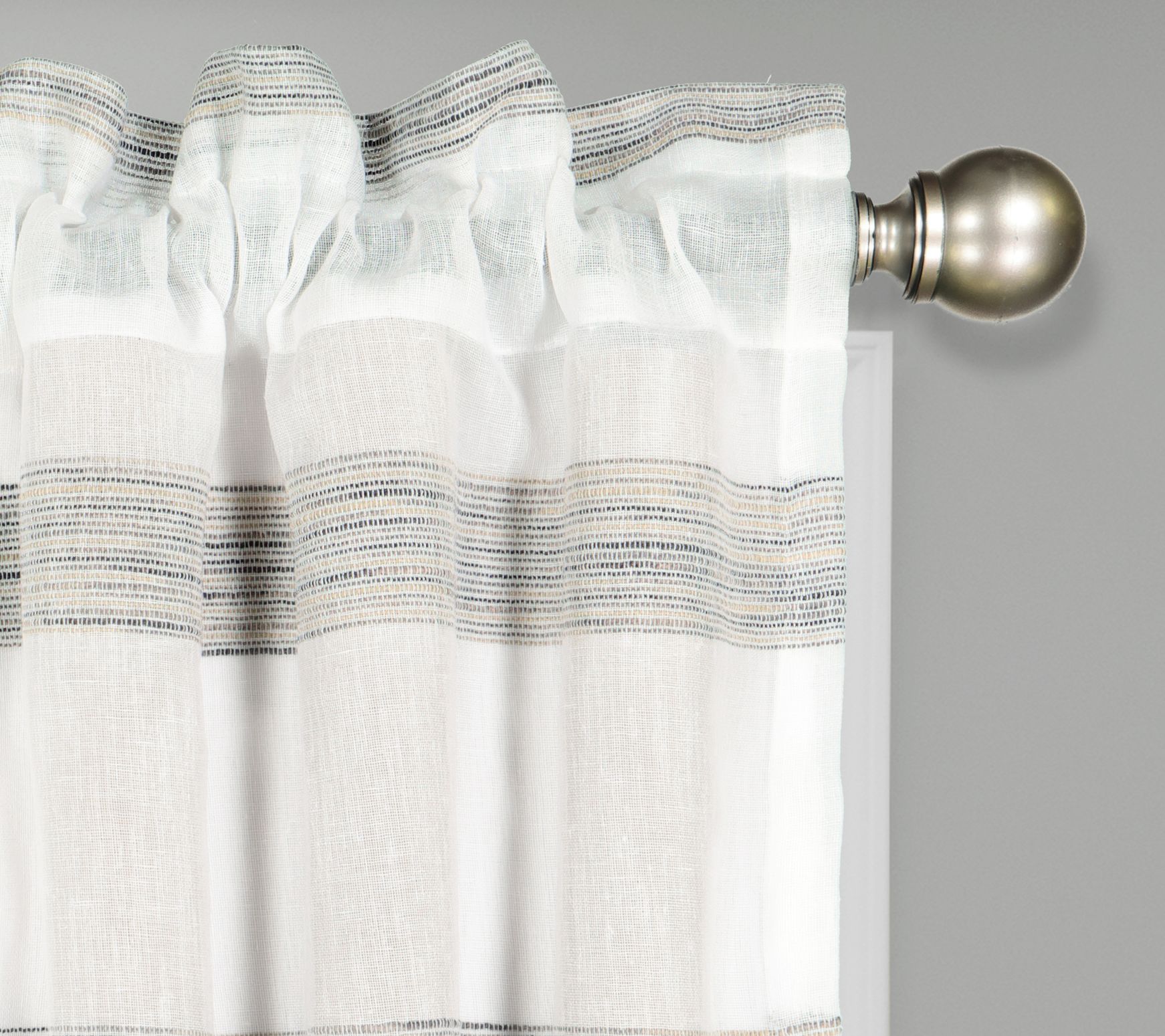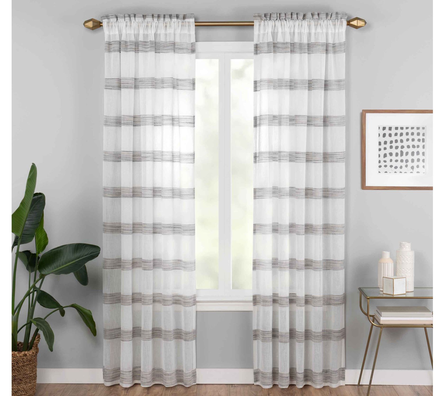 Elevate your living area with this textured, semi-sheer curtain panel featuring colorful striations throughout. From Vue.