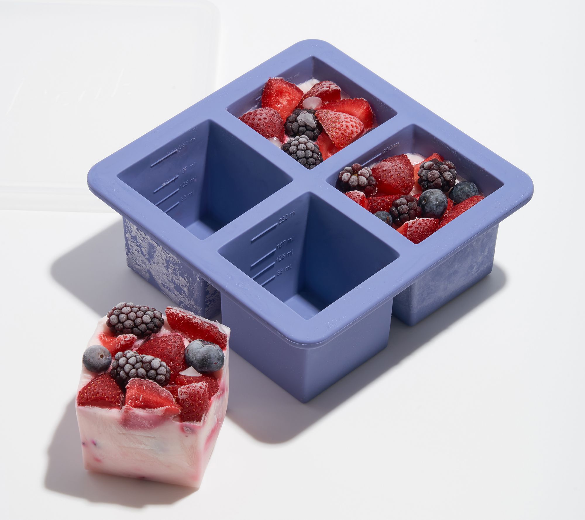 W&P Set of 2 4-Cube Silicone Cup Cube Freezer Trays w/ Lids