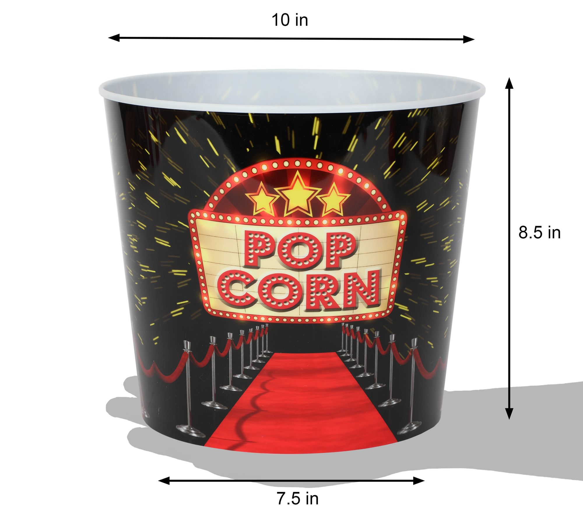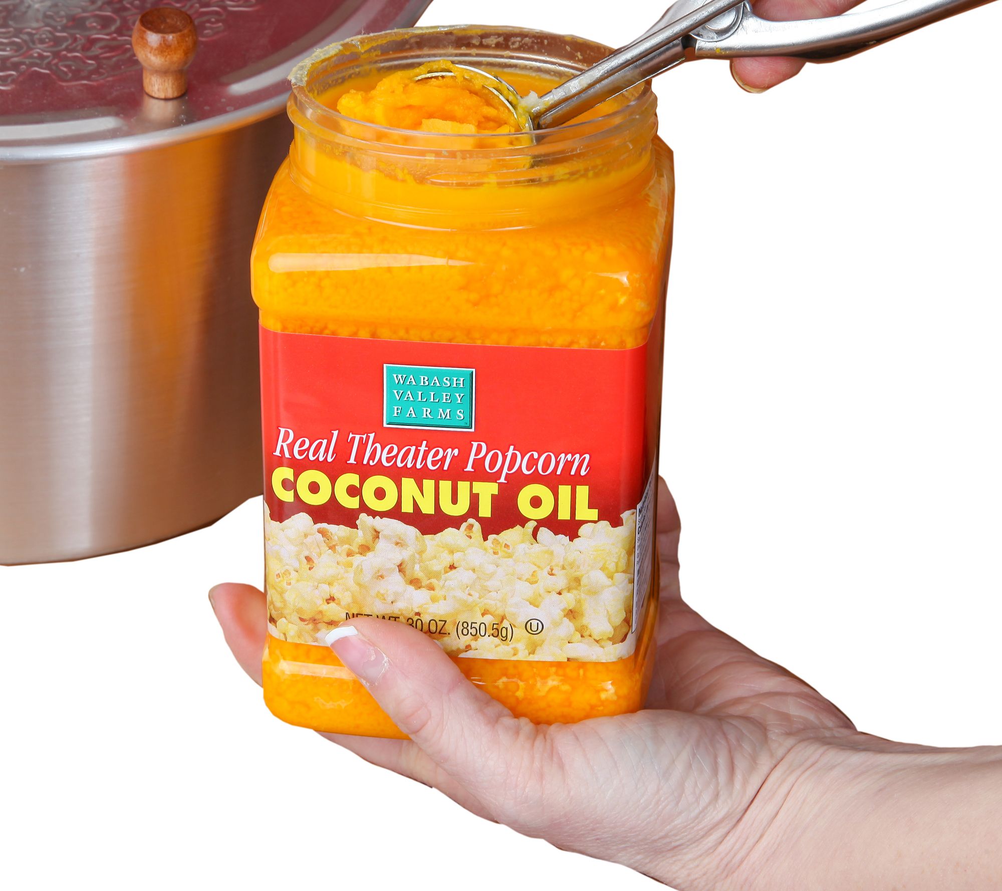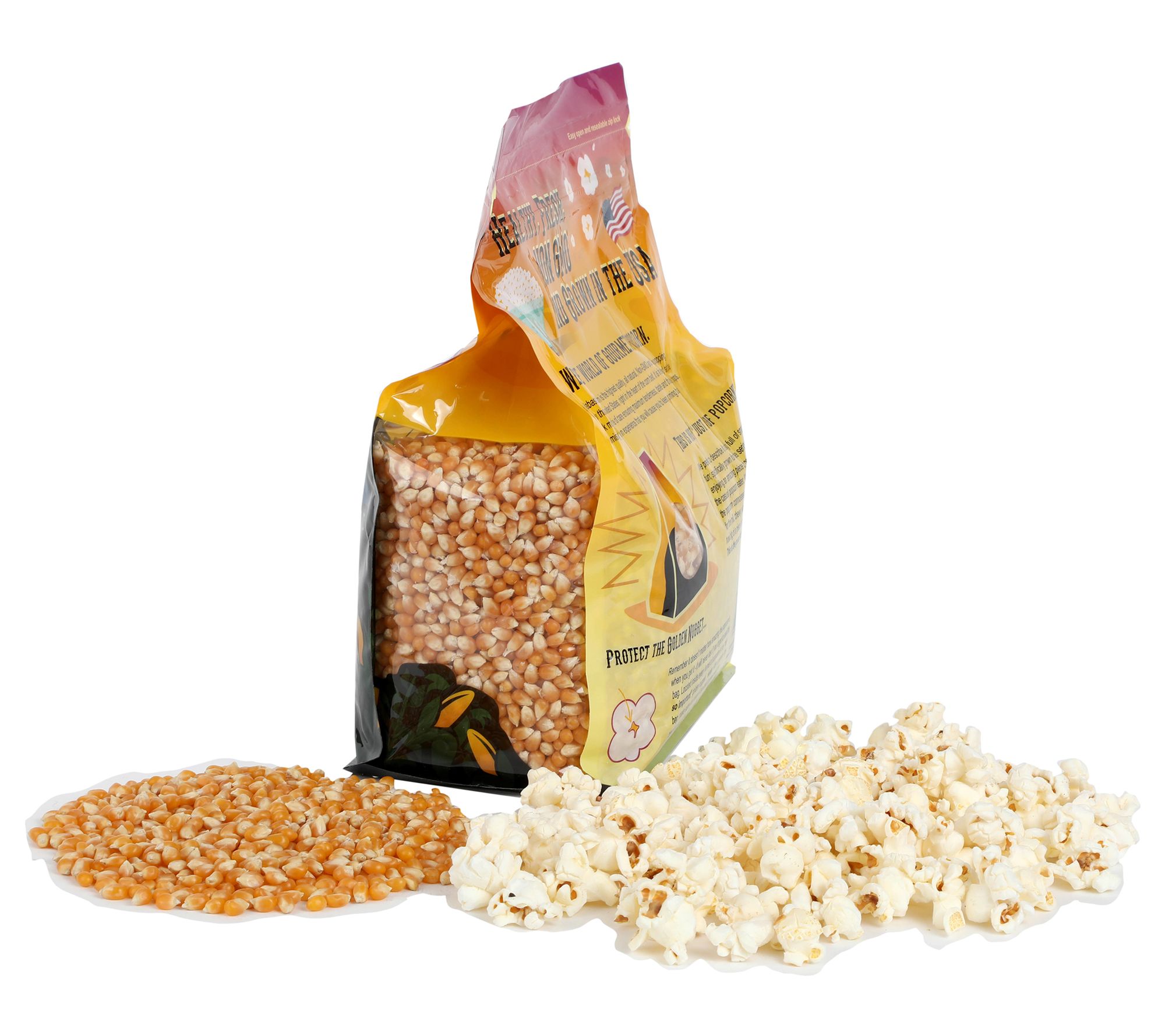 • Includes 6-lb resealable bag of Farm Fresh big and yellow popcorn kernels, 9-qt plastic jumbo red carpet-themed popcorn tub, 30-oz jar of Real Theater Popcorn coconut oil, 1-oz Ooh La La French Toast popcorn seasoning, 1-oz Lip Smackin's Baby Back Ribs popcorn seasoning, Yes Ma'am Ketchup Please popcorn seasoning, and 1-oz Dough Ra Me Chocolate Chip Cookie Dough popcorn seasoning