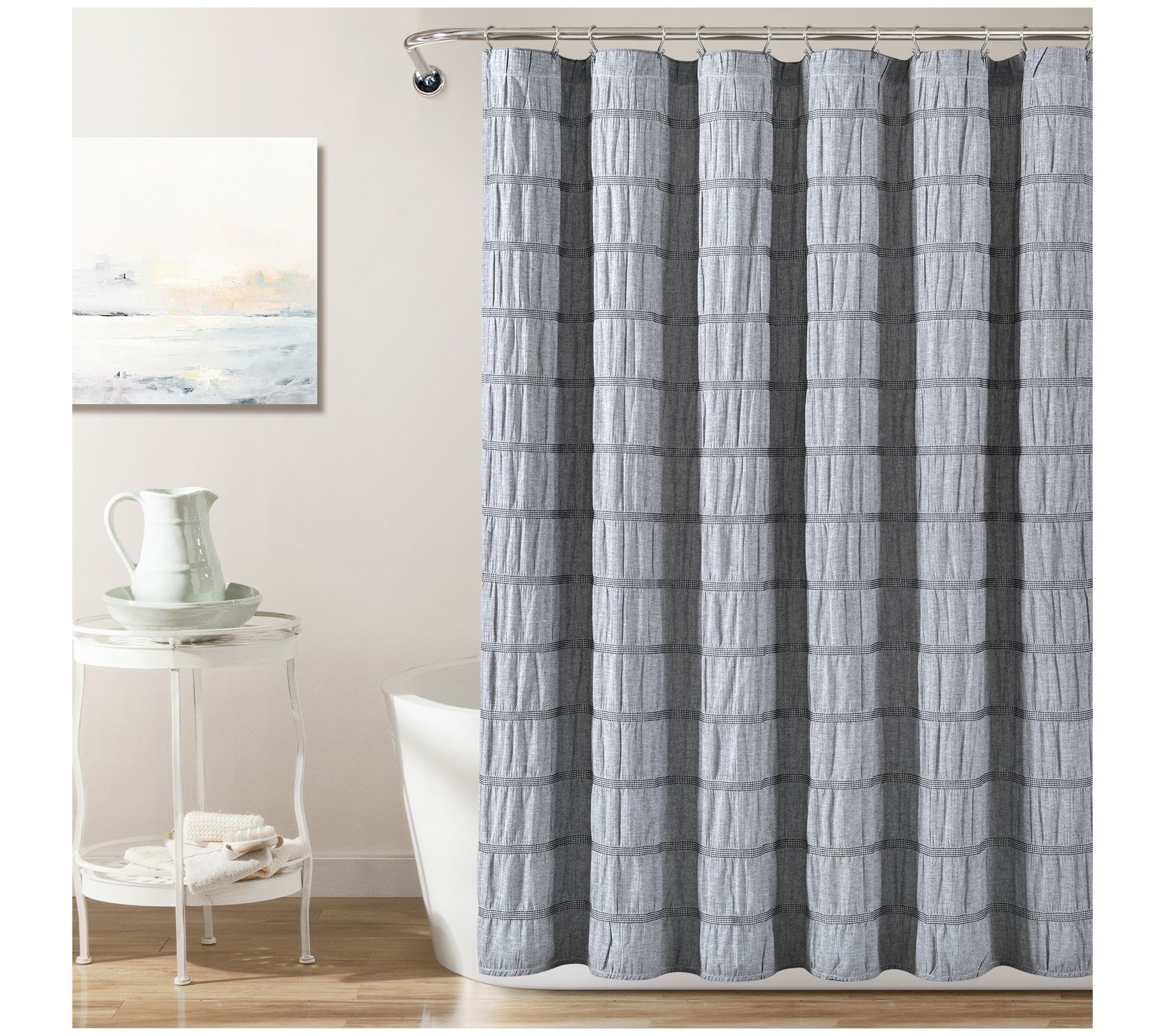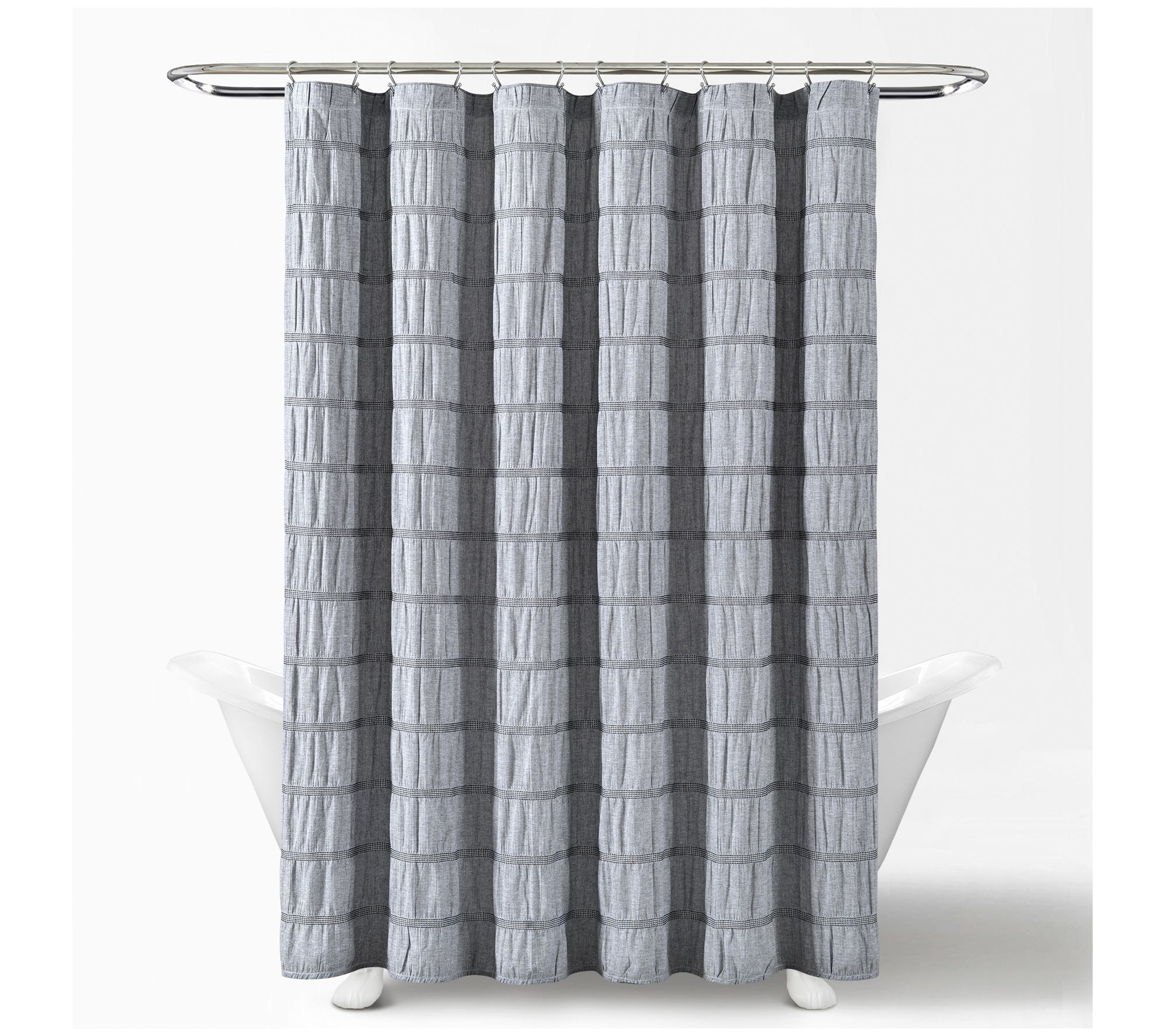 Update your master or guest bathroom with this on-trend woven shower curtain with textured horizontal stripes. This 100% cotton shower curtain blends beautifully into a minimalist, traditional, or modern farmhouse style. From Lush Decor.