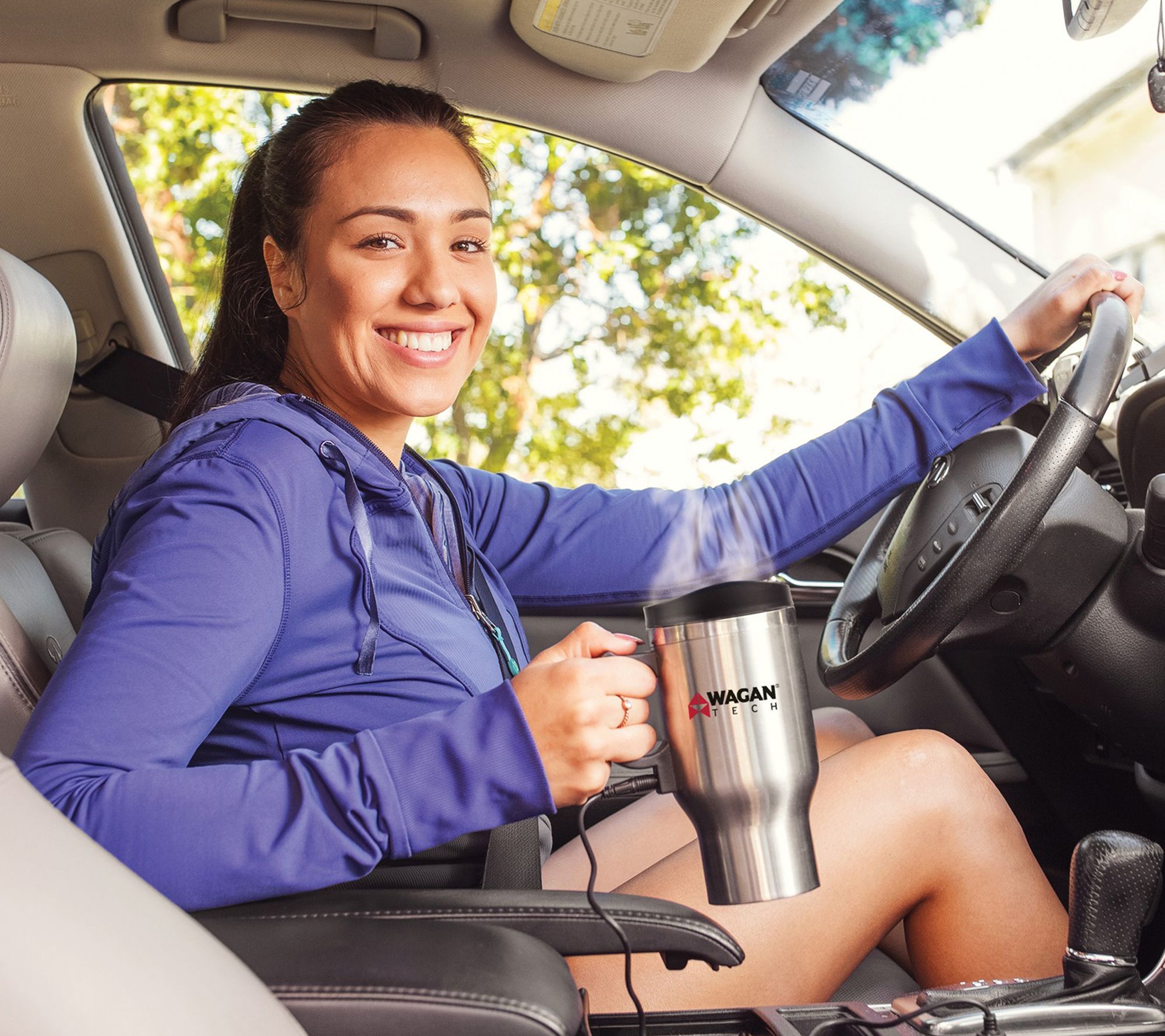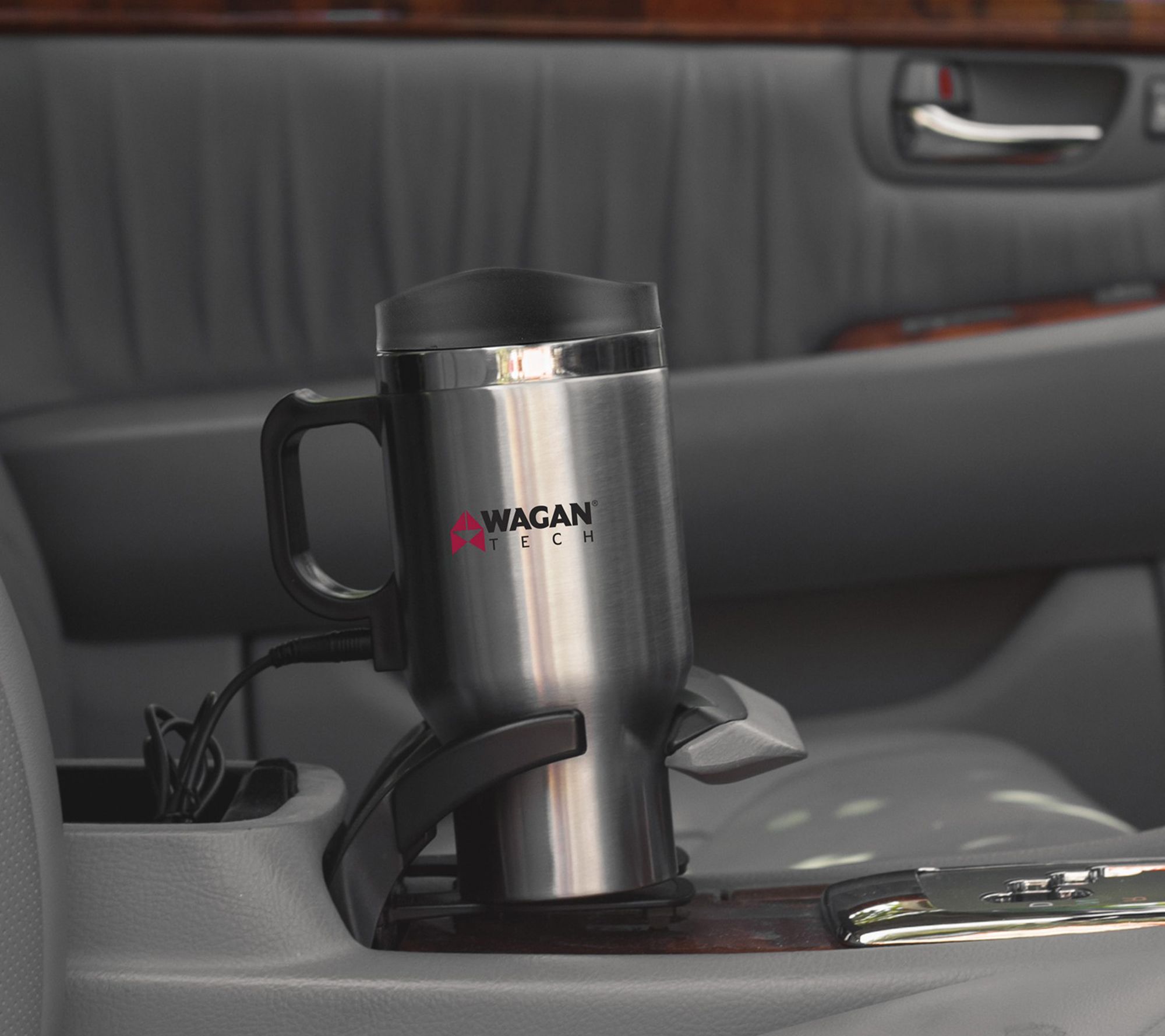 Keep your coffee and tea pipin' hot when you're on-the-go with this deluxe heated travel mug. From Wagan Tech.