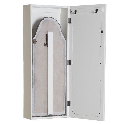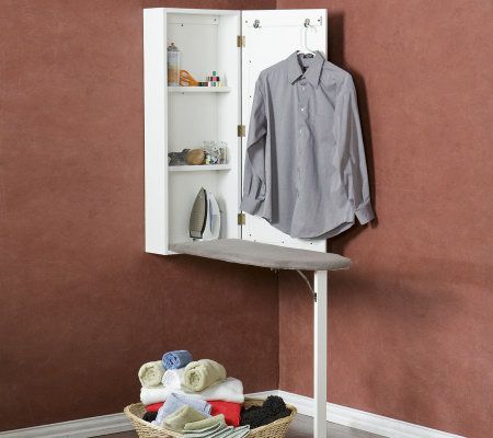 Take the stress out of ironing with this convenient space-saving center. Simply open its latched door, lower the board, and press on. It's got room for your iron and starch, sewing accessories, or a lint brush on its two shelves. When finished, fold the board, latch the door, and view your neatly pressed and totally put-together image in its front mirror. From Southern Enterprises, Inc.