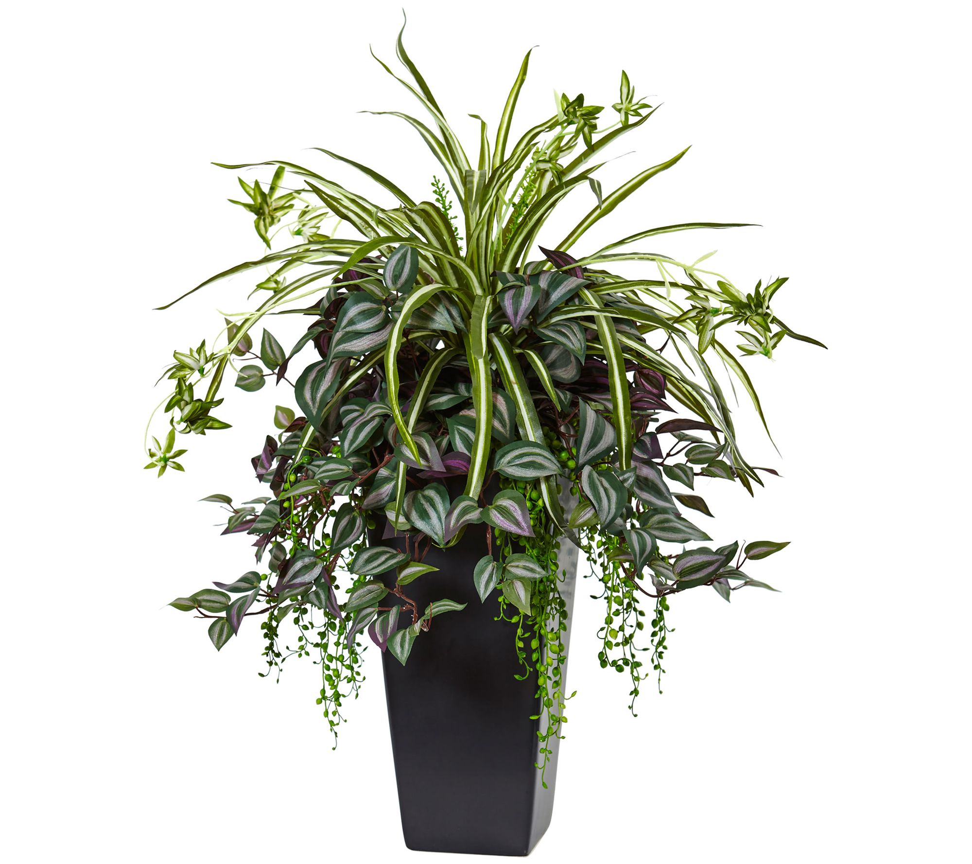 You've got your house looking just so. Now it's time to add that special something that makes any space a home. This lifelike wandering Jew and spider arrangement is the personal touch you've been looking for. From Nearly Natural.
