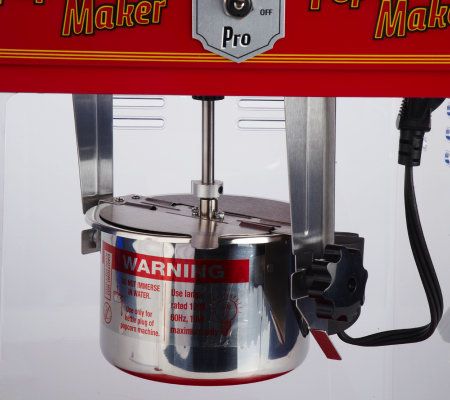 Movie night? Make it right with this professional popcorn maker. Popping up to 8 cups, this old-fashioned, theater-style model comes complete with a stirring mechanism, pivoting kettle, and see-through side window. From Waring Pro.