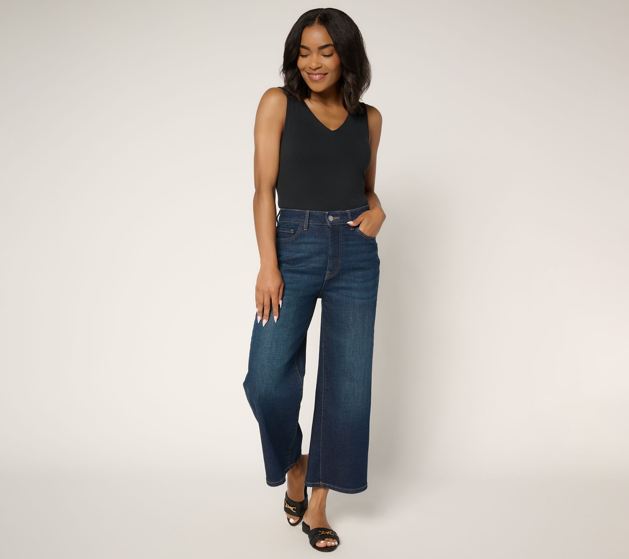 No matter what the day has in store, these cropped wide-leg jeans from Warp & Weft bring freedom of movement and effortless style in one go. The Jet Set high-stretch denim feels a bit like your favorite yoga pants, while a functional zip fly adds classic appeal. Pair with sneakers or your favorite sandals for feel-good vibes all around. From Warp & Weft.