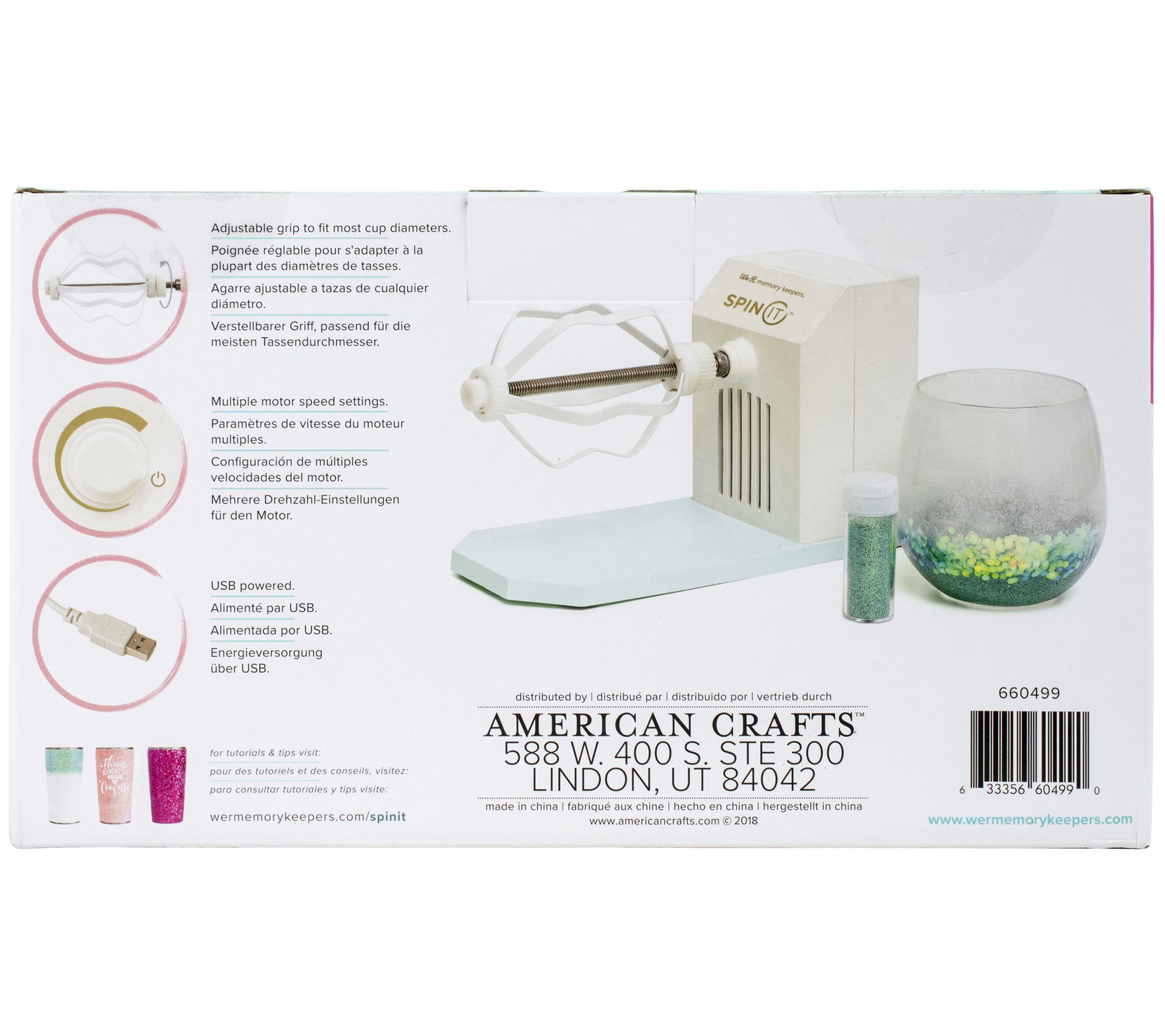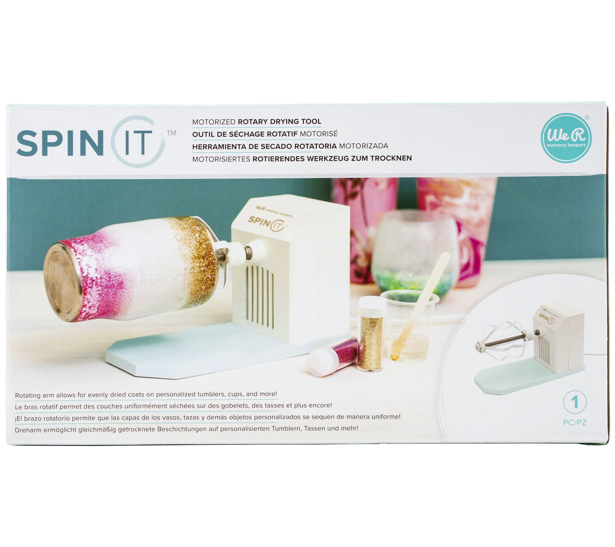 Personalize your tumblers, cups, and more with the We R Memory Keepers Spin It motorized rotary drying tool. The rotating arm ensures evenly dried coats of epoxy, and the adjustable grip fits most cup diameters. From We R Memory Keepers.