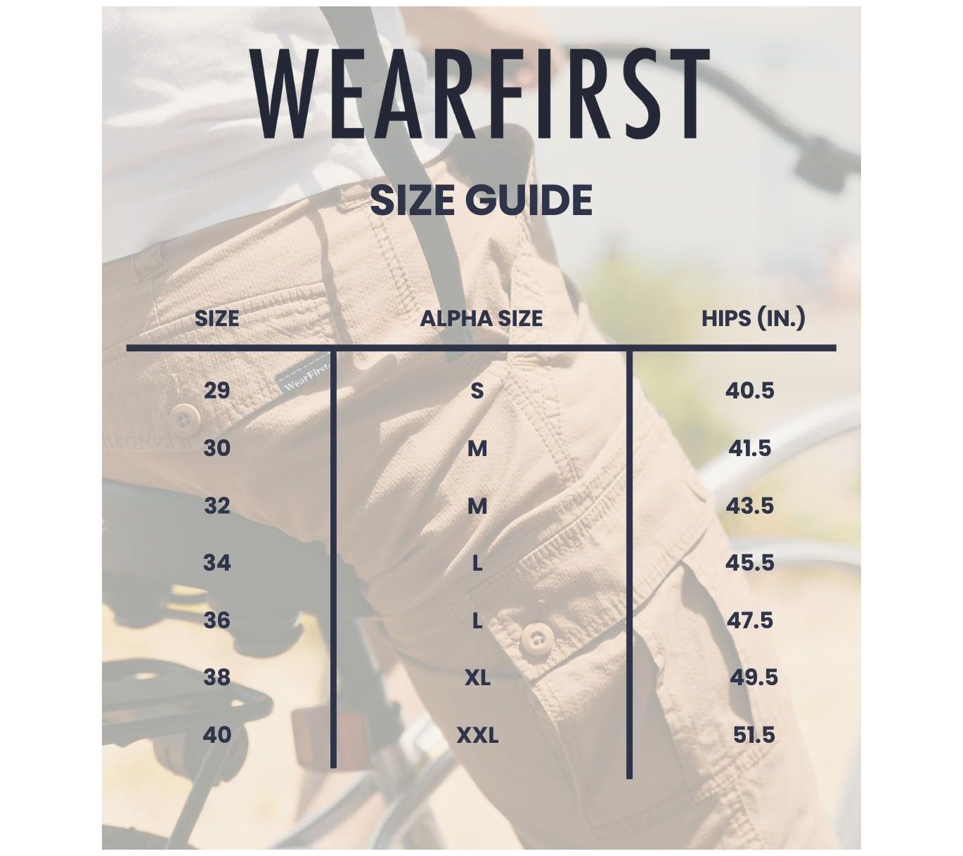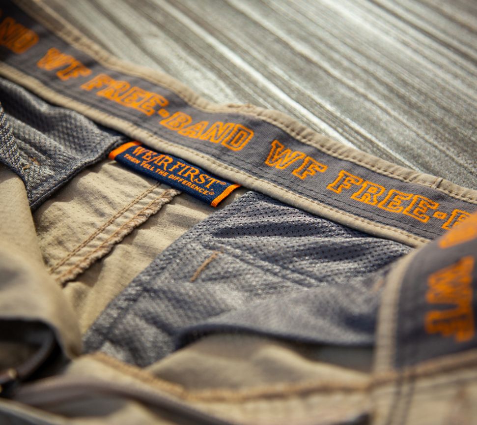 • Features: elastic waistband with belt loops, two front pockets, zipper fly, two back pockets, and zippered tech pocket