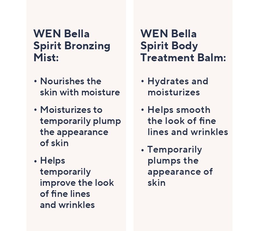 Step into your golden age! The WEN by Chaz Dean Bella Spirit Self-Tanning Bronzing Mist is a beautiful shortcut to that sun-kissed glow. For all skin tones, this hydrating formula is so easy to use -- simply spray onto your skin and buff using the bronzing brush. This formula is developed using a plant-based DHA and with the core ingredients of Bella Spirit Skincare: lavender flower water, cucumber fruit water, eucalyptus leaf water, bamboo water, a blend of honey, and a four-tea complex to help moisturize your skin. Loaded with skincare, this formula is never sticky, tacky, or greasy. Bonus -- no self-tanner smell!