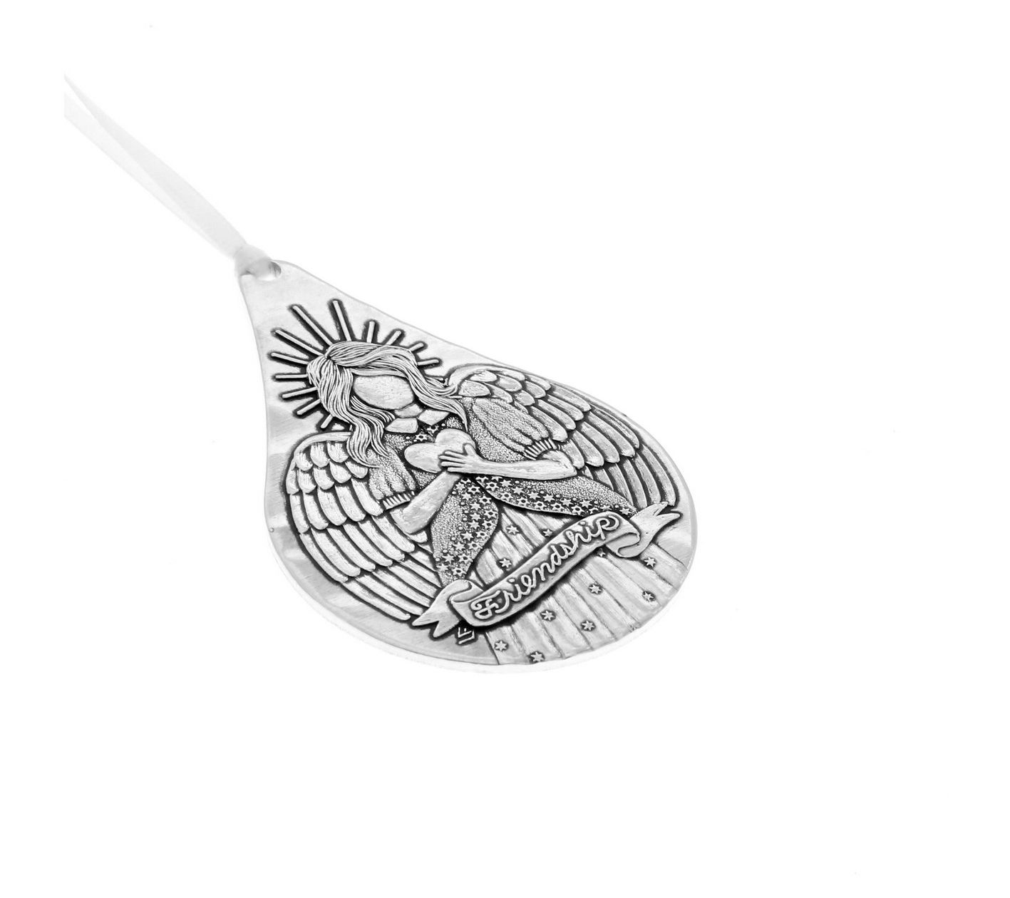 Celebrate the bond of friendship with this exquisite teardrop-shaped angel ornament. Crafted from lightweight and durable aluminum, this decoration serves as a touching reminder of enduring connections and is a charming addition to any space. Ideal for year-round display, whether on a tree or a mantel, it's a thoughtful way to honor treasured relationships. From Wendell August.
