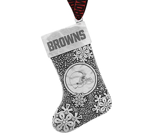 Celebrate the holiday season with the NFL snowflake stocking ornament, a perfect blend of festive cheer and team spirit. Crafted from high-quality aluminum, this ornament features your favorite team's logo on a snowflake-shaped stocking, complete with a colorful team-colored ribbon. It's an ideal gift for any football fan looking to combine their love of the game with holiday traditions. From Wendell August.