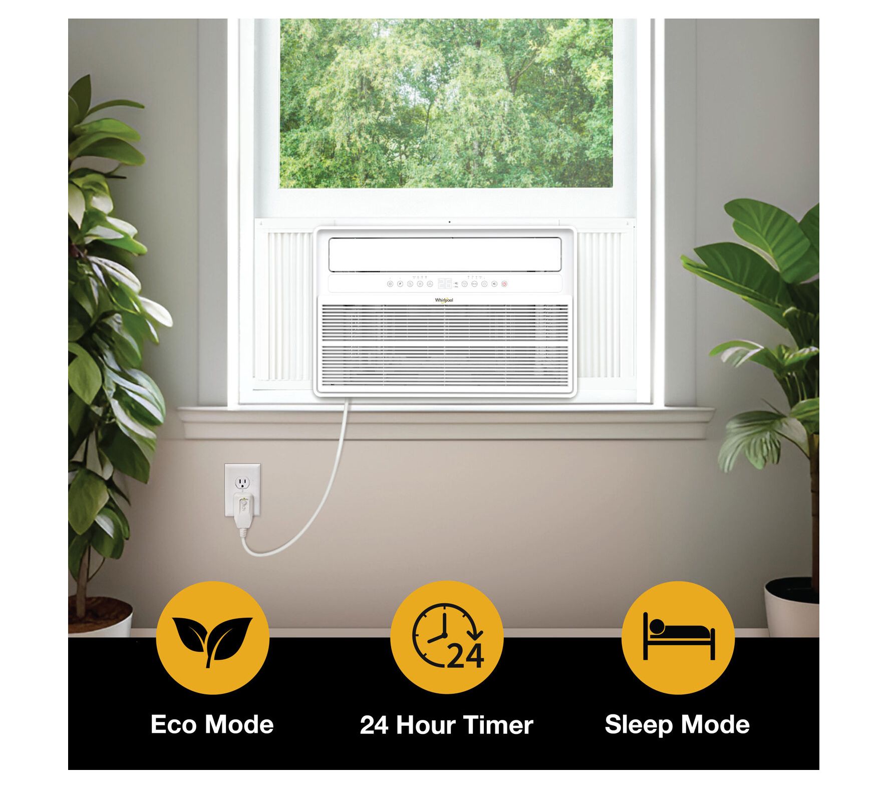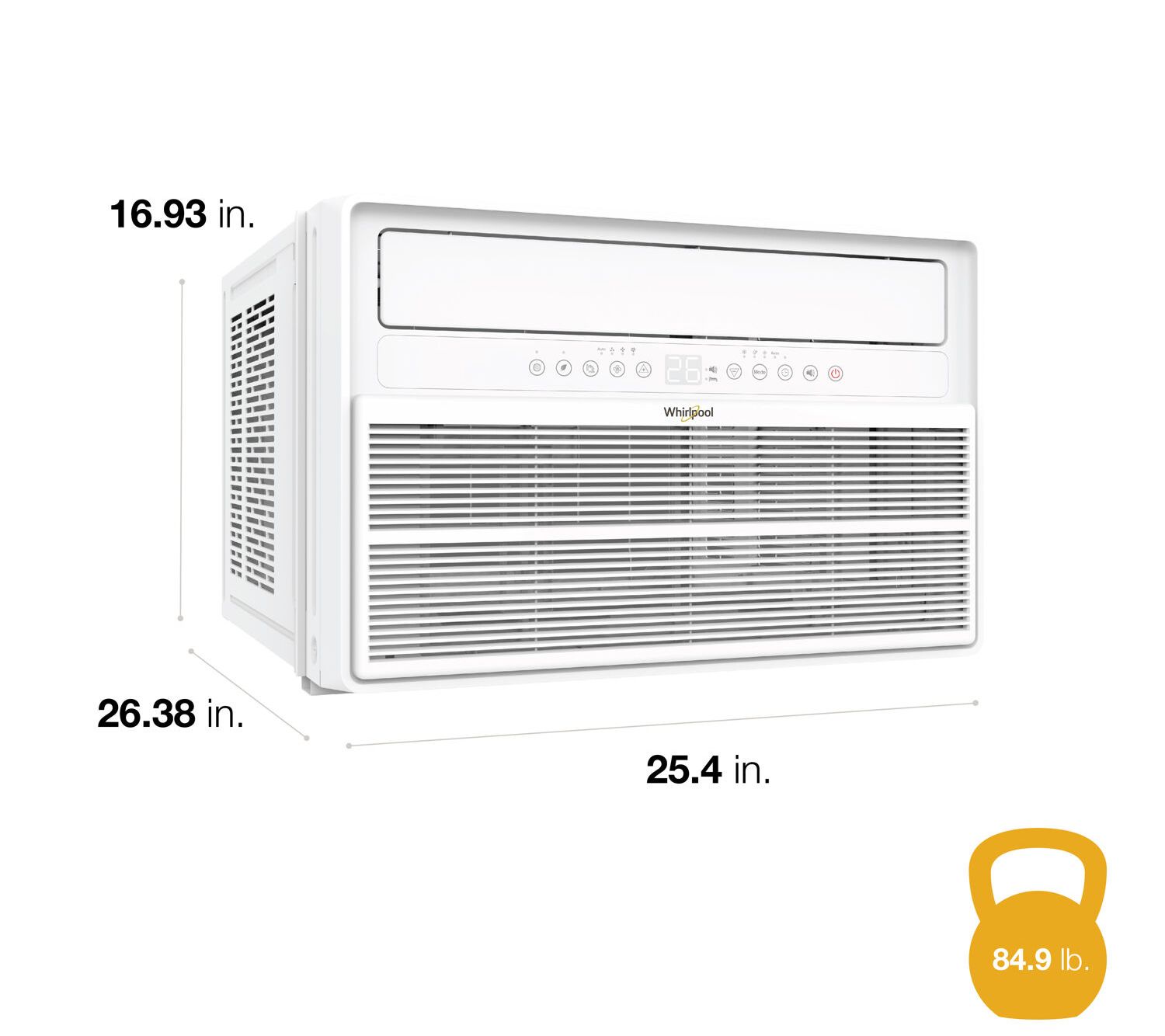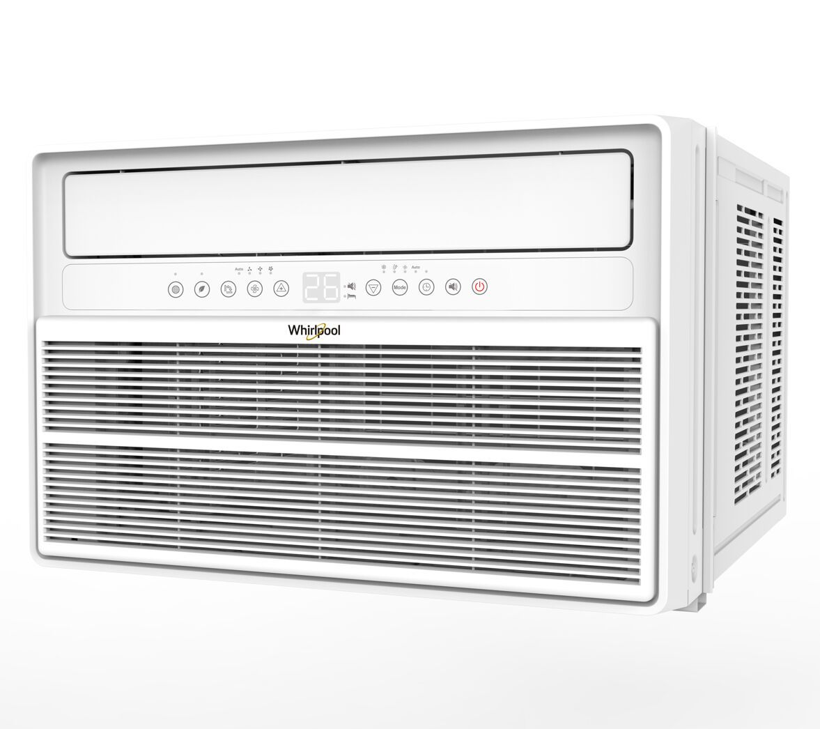 Chill out on a hot day with a whisper-quiet cool breeze from this powerful Whirlpool window-mounted air conditioner unit. With its inverter technology, this air conditioner ensures efficient energy use by adjusting the motor speed to maintain your ideal temperature without wasting power. Perfect for the home office or bedroom, it covers up to 700 square feet, offering sweet relief from the heat. Plus, the Eco and Sleep modes give you control over energy use and nighttime comfort. From Whirlpool.