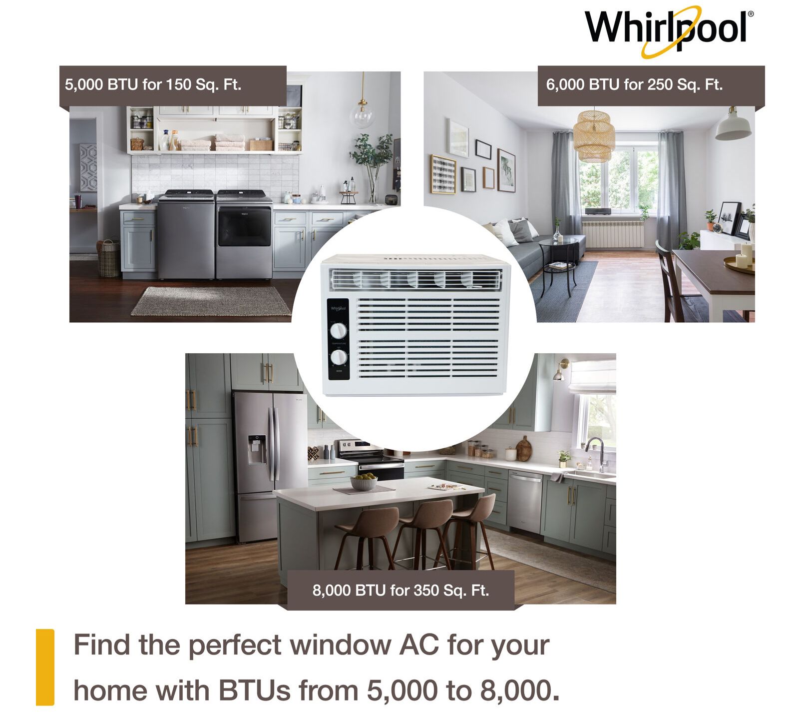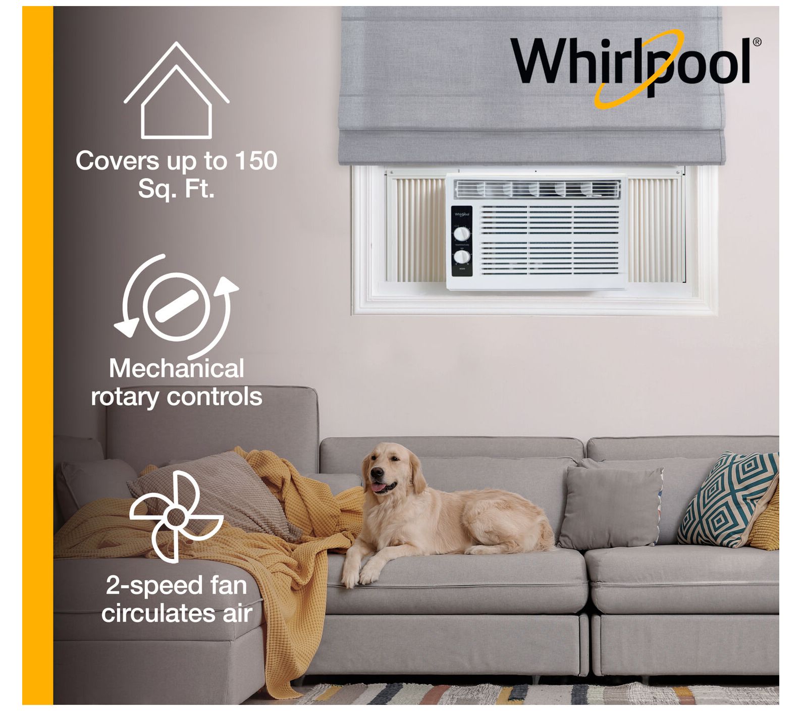 Stay cool and comfortable with this air conditioner perfect for smaller spaces. This unit features mechanical rotary controls for easy adjustment of temperature and fan speed, while the directional air louvers ensure targeted cooling. Its removable and washable filter makes maintenance a breeze. From Whirlpool.
