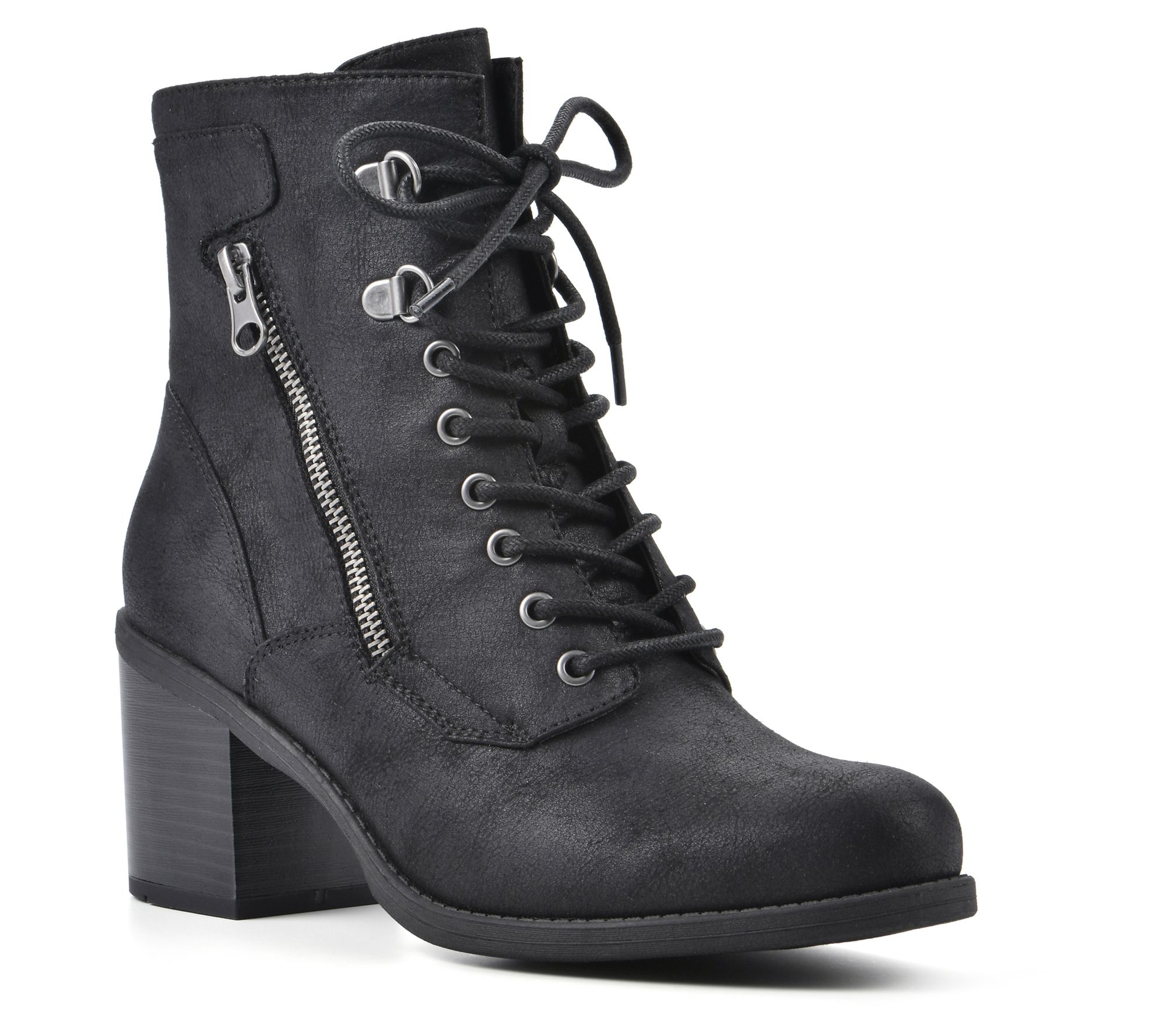 Command the sidewalk with these chunky heeled boots embellished with zippered accents and D-ring laces for a hiking-inspired look. Side zippers make taking them on and off a breeze. From White Mountain.