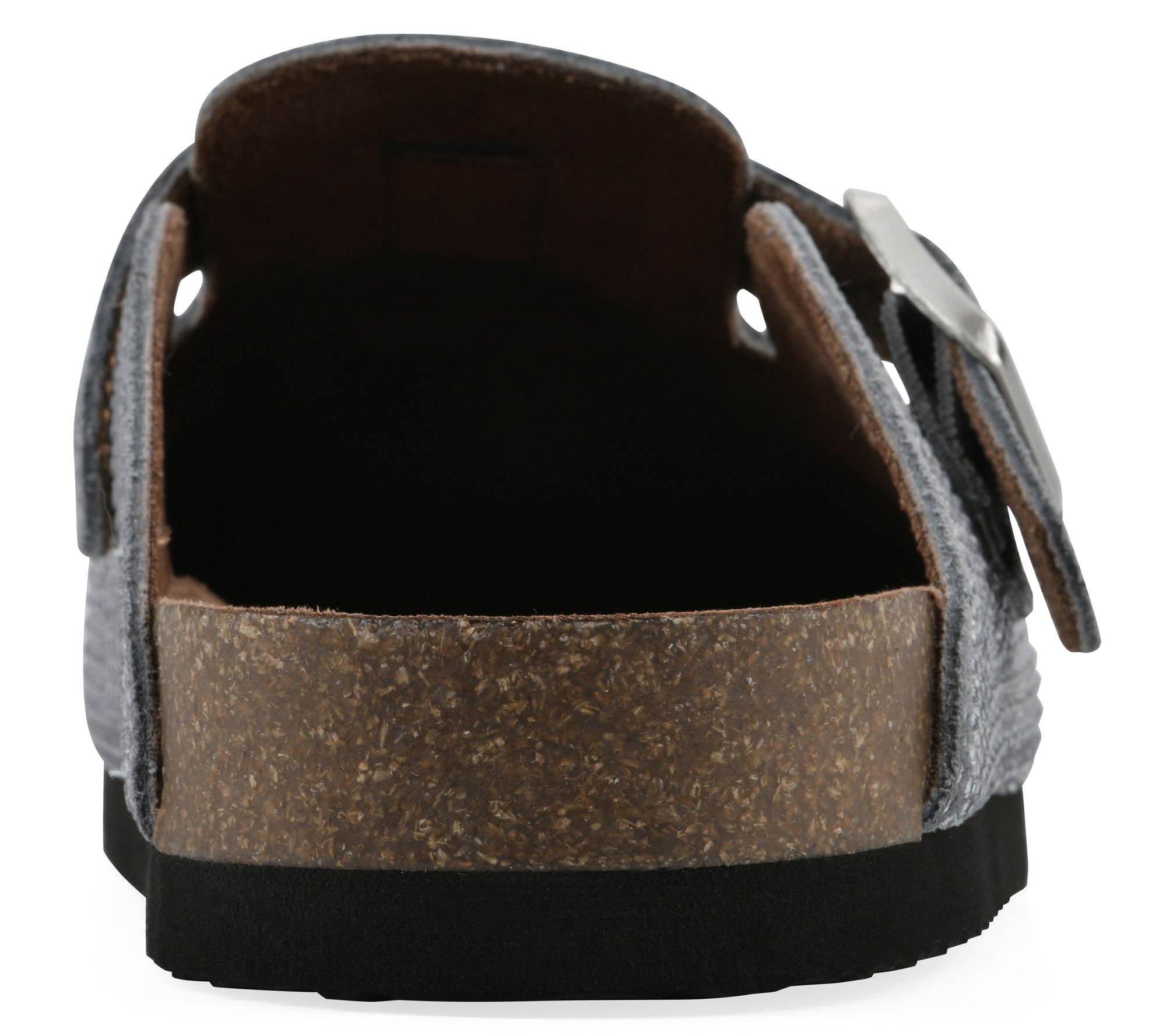 • Anatomic footbed insole with suedette lining, faux cork midsole, flexible treaded outsole