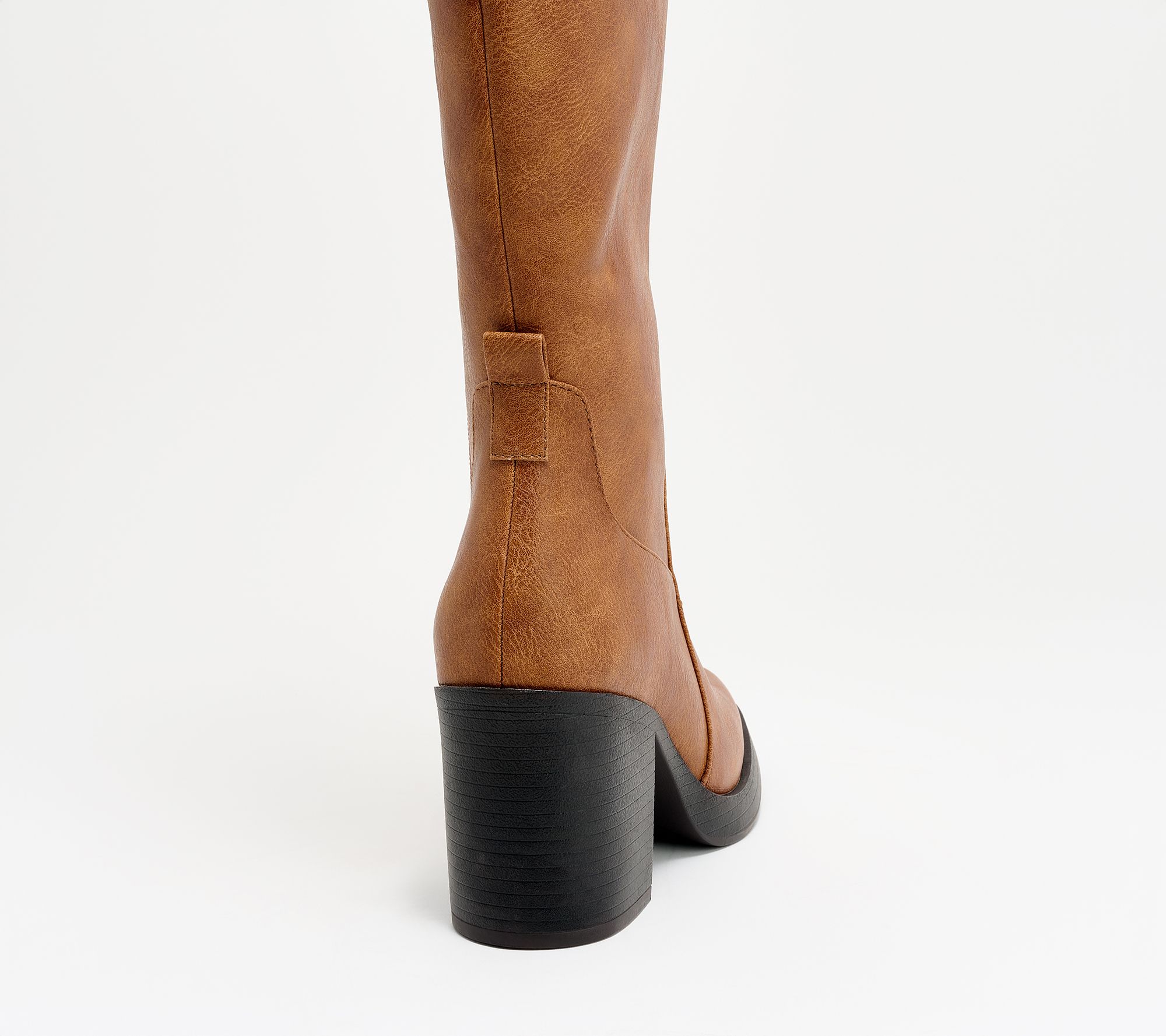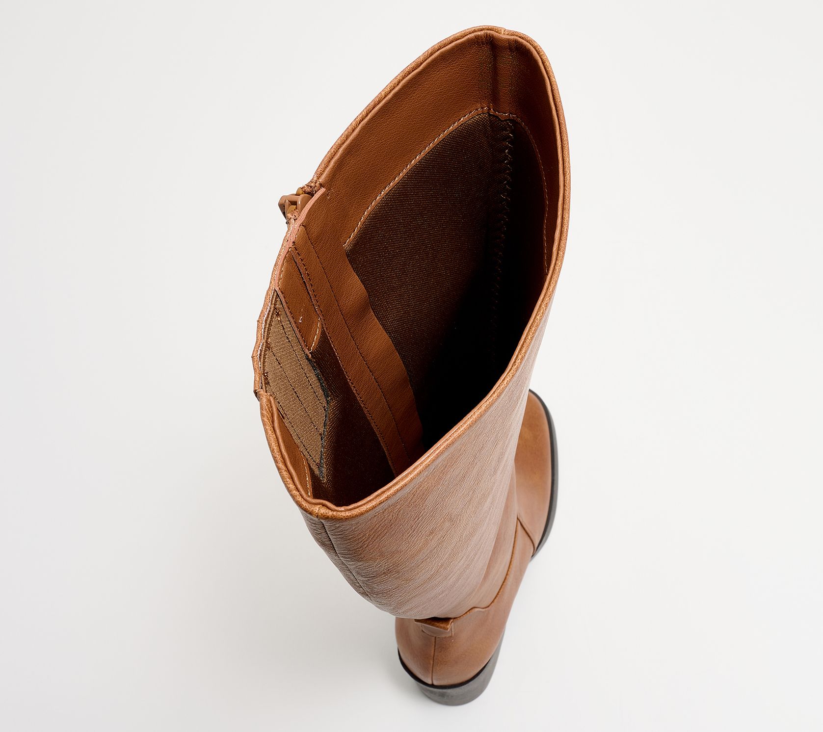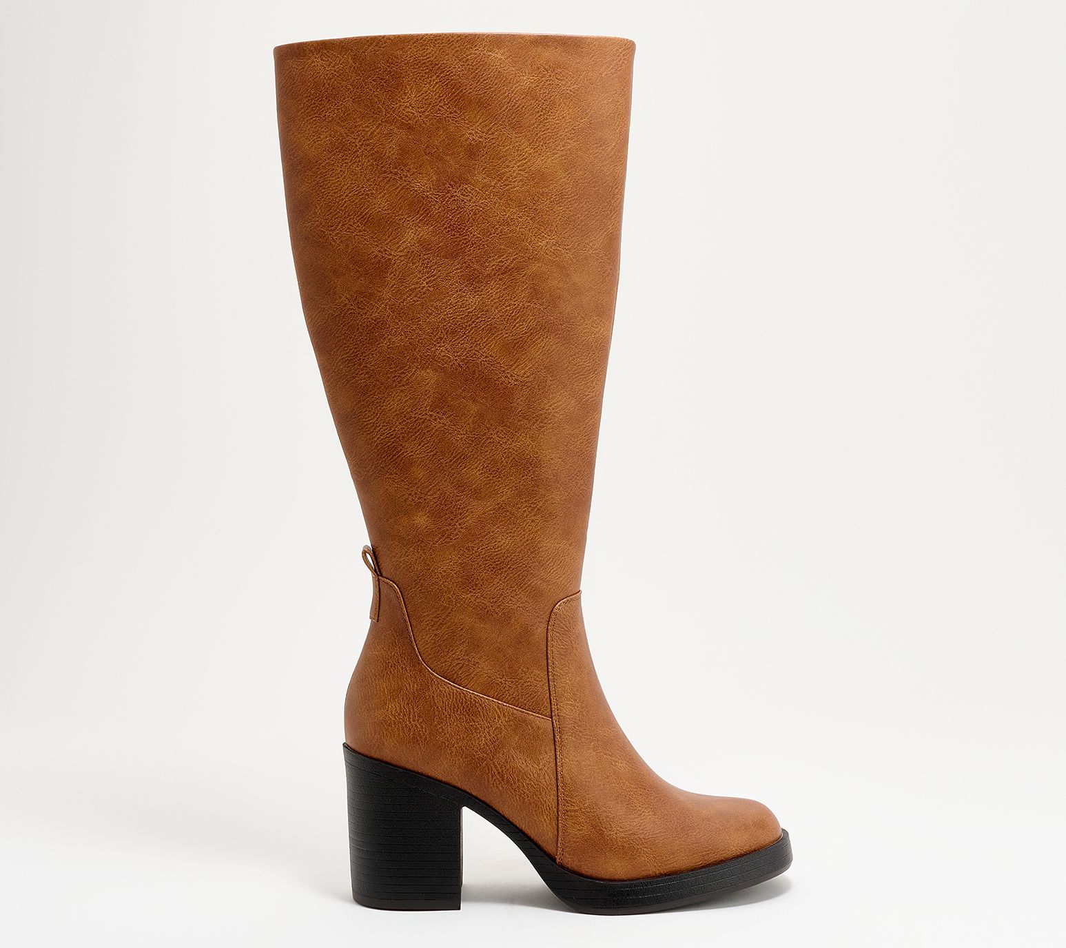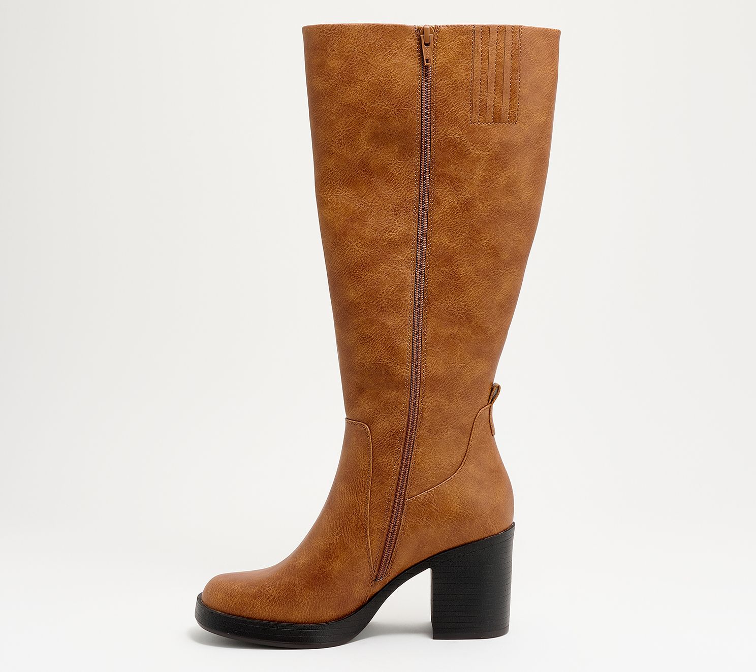 Medium calf, tall-shaft silhouette with top elastic gore, full inside zip closure