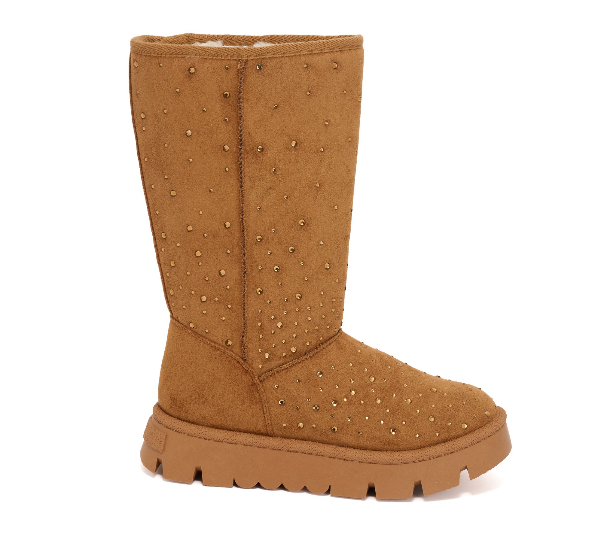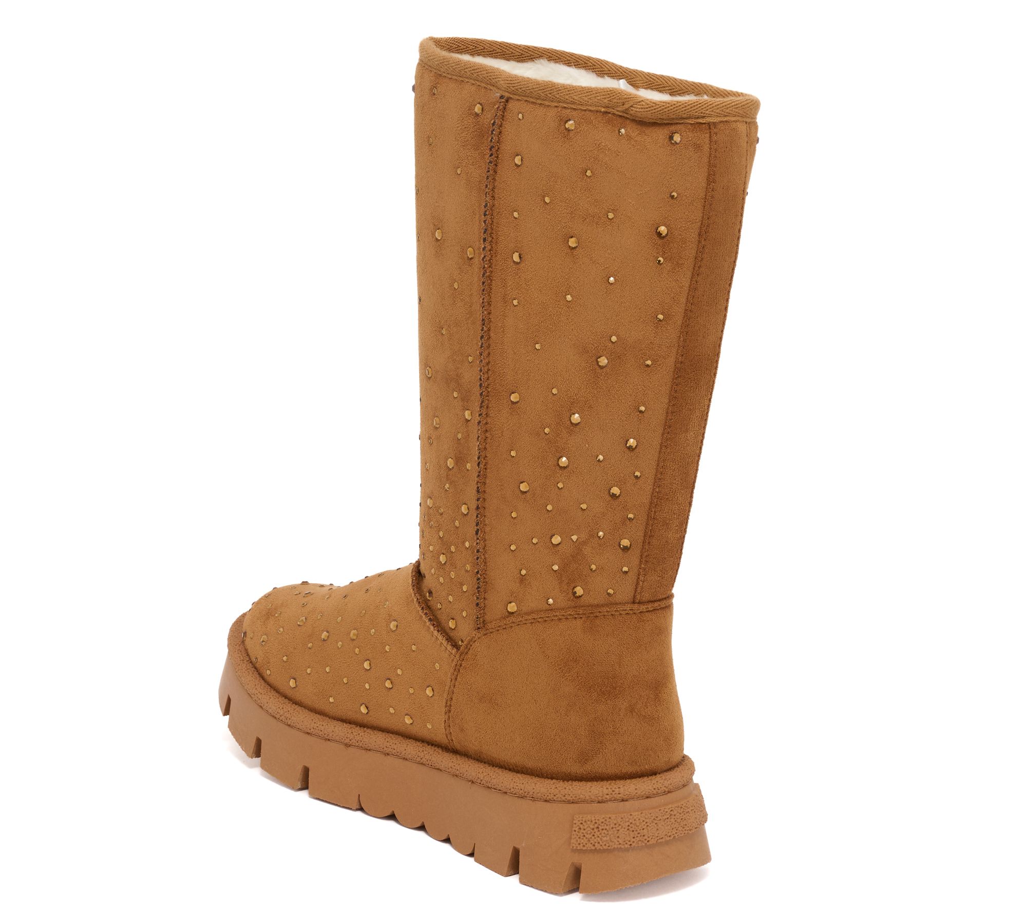 Cool-weather adventures can handle elevated style, thanks to these tall faux-fur boots featuring glitter stone accents on the suedette upper. Designed with pull-on ease, their plush faux-fur lining wraps your feet in warmth, while the treaded platform outsole offers reliable traction for workday commutes, winter strolls, or running errands on chilly mornings. From White Mountain.