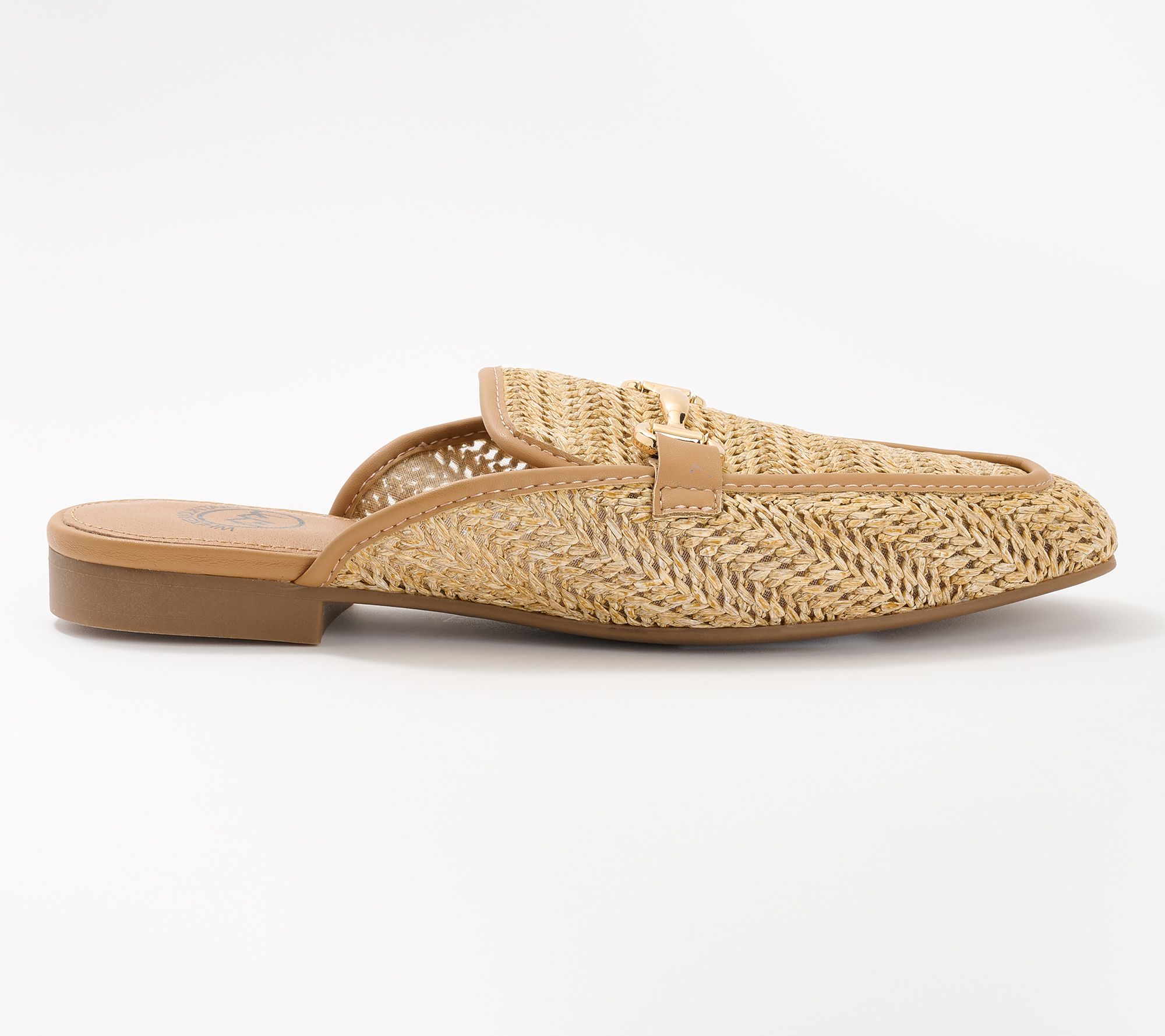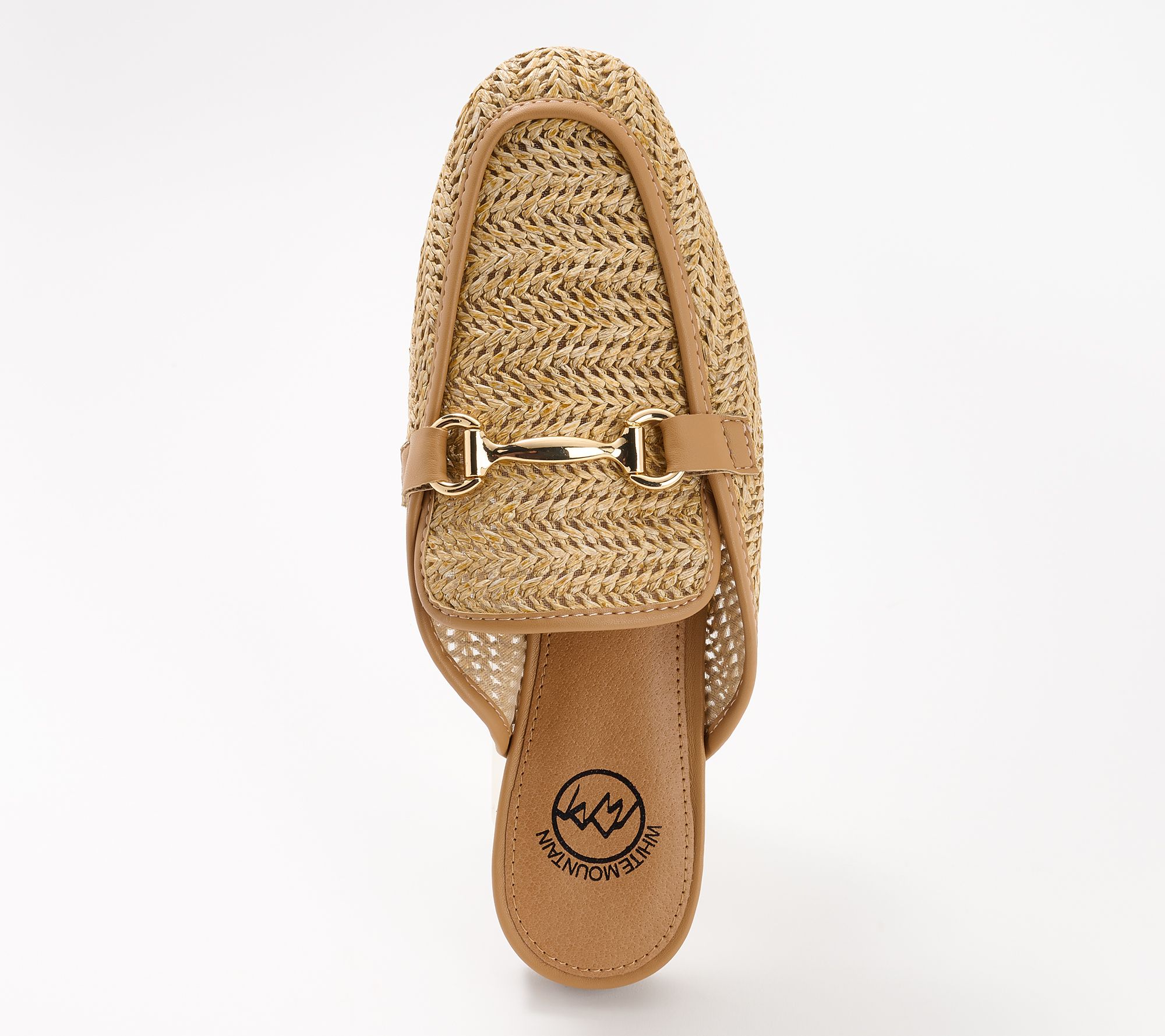 A laidback look with an upscale vibe, these woven slide mules combine a low-profile silhouette with a raffia upper accented with piping detail and ornamental bit. From White Mountain.